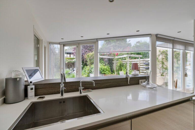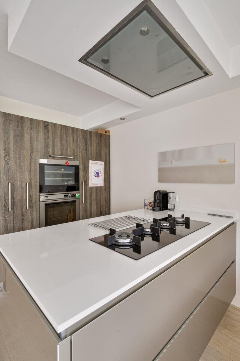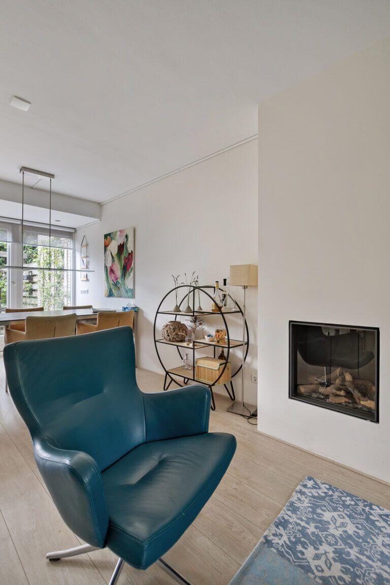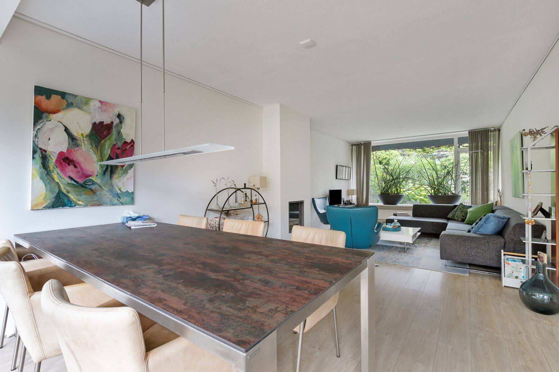 Upon entering, you step into a spacious hall with a meter cupboard/pantry, a toilet, the staircase to the upper floor, and access to the living room. The spacious living and dining area enjoy plenty of natural light and have a beautiful view of the backyard. The modern kitchen at the back is equipped with a breakfast bar, an island, a gas hob, an extractor hood, a fridge with freezer compartment, an oven/grill, a Quooker, and a wine fridge.