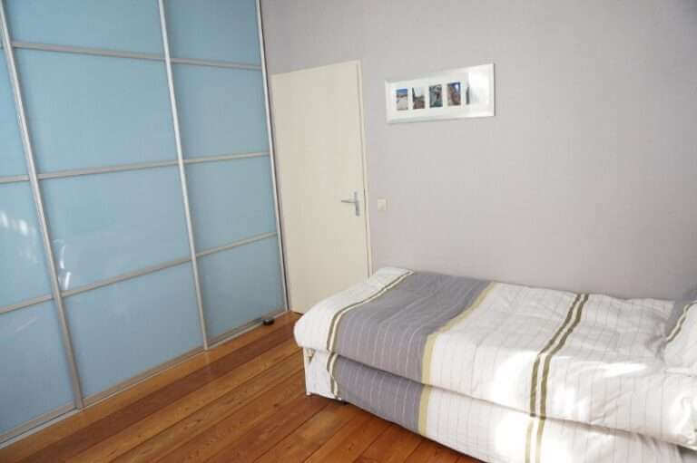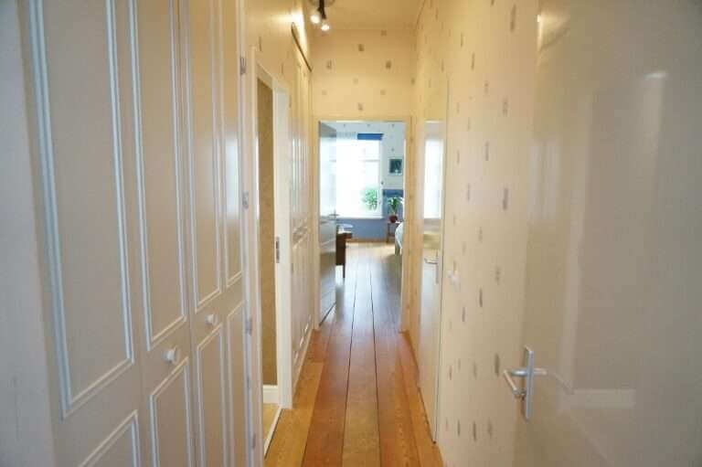 Via the canal ‘Singel’ a corridor leads to the apartment with two floors. The hallway leads to the living room, closed kitchen and gives access to two bedrooms, bathroom with shower, bath and toilet.