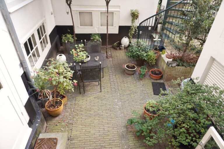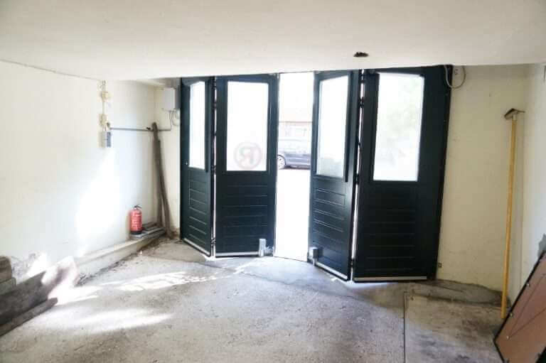 The garage with remote controlled electric doors is located at Spuistraat side. Through the garage is to enter the garden and home.