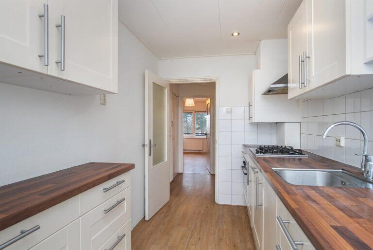 In Arnhem North near the city centre on the edge of the Sterrenberg district located unique 4 bedroom flat on two floors, with double entrance and balconies with fantastic views overlooking the meadows. This beautiful area is centrally located to the city centre, arterial roads and the famous city parks of Arnhem. Shops within walking distance, parking facilities without permit.