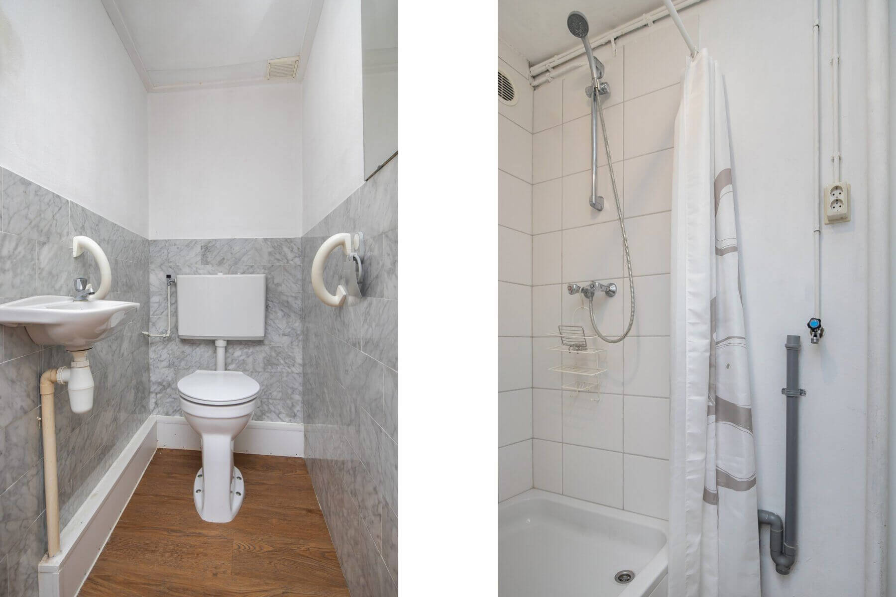 In the hallway there is a staircase leading to the lower floor, which is adjacent to a paved area at the rear and also has its own entrance there. This floor has two generous bedrooms, a separate shower room and second toilet. The layout makes this flat ideally suited to living with an au-pair or similar setting.