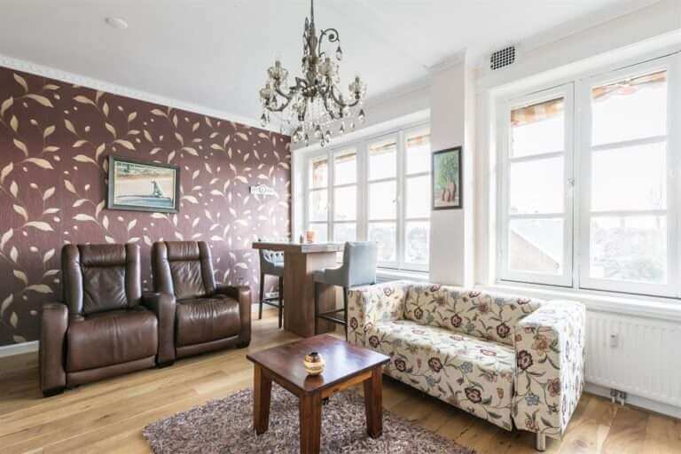 Entrance. Spacious hall with access to all rooms. Spacious living room with dining room and suite. Second cozy living room and kitchen with appliances. Master bedroom, bathroom with bath, shower and double sink. Separate toilet.
