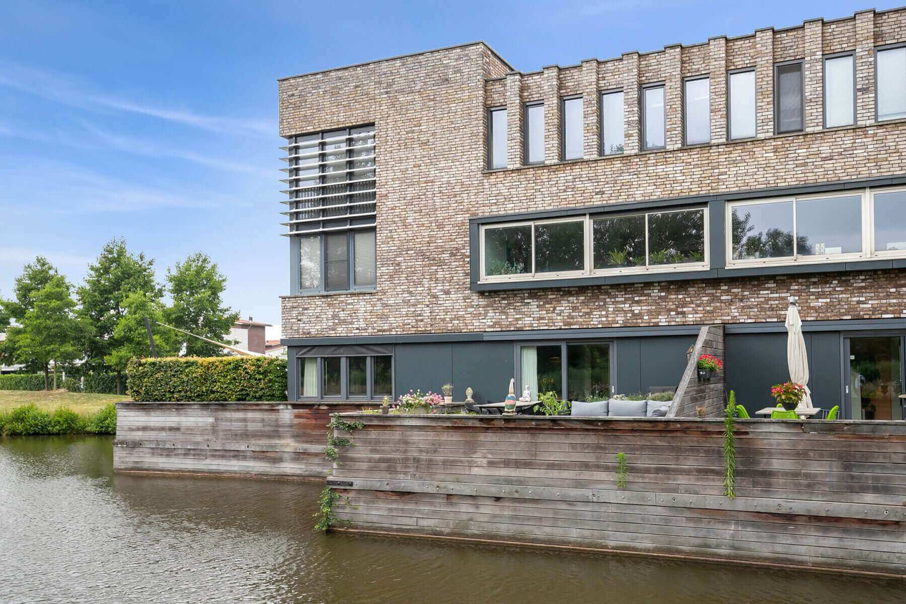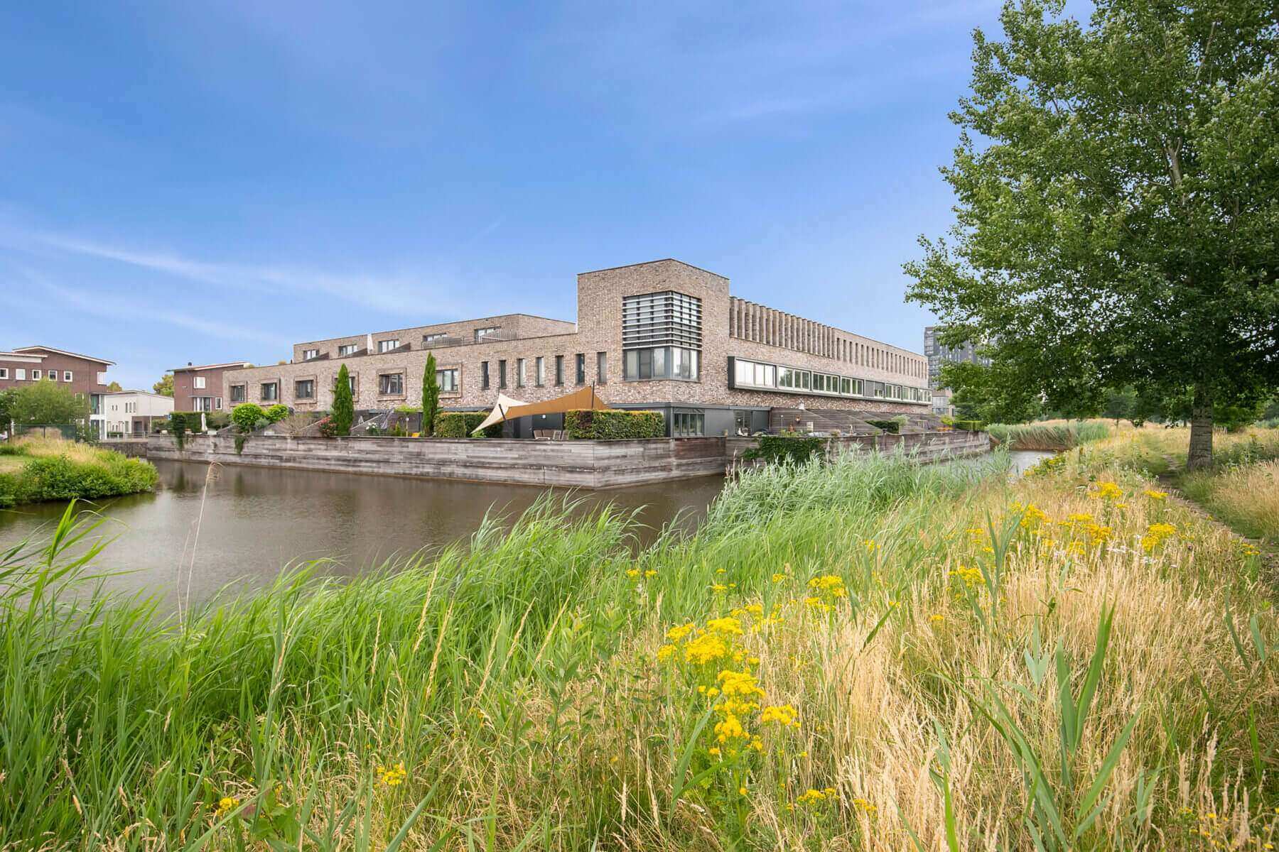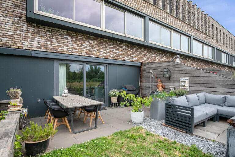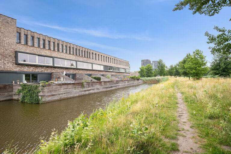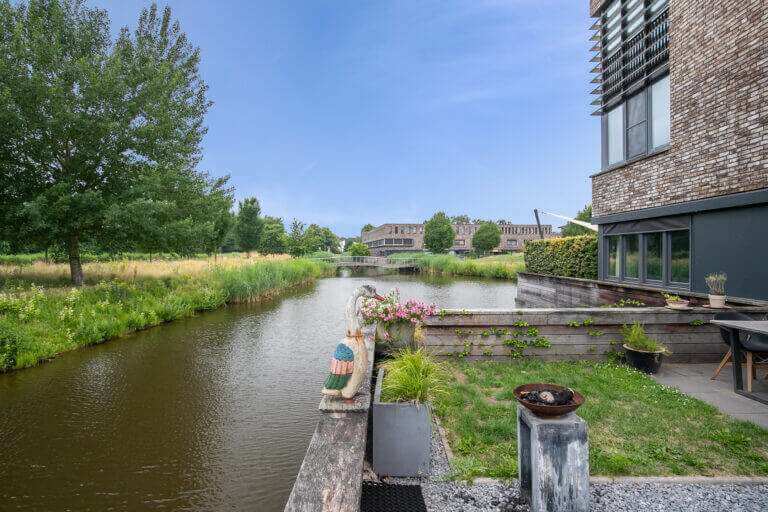 Surprisingly spacious energy efficient (energy label A) town house with sun terrace/garden (more than 36m2), indoor storage room and private parking space on shared private grounds, located in the new “Woonpark Sculptura” on child-friendly residential island “Bernini”. This modern home is mainly characterized by the unobstructed view over a park-like water-rich environment, the child-friendly character of a car-free residential courtyard, the cozy kitchen with access to the fantastic backyard / terrace overlooking the water, a multifunctional spacious living / office on the first floor and 3 spacious bedrooms with spacious bathroom on the second floor.