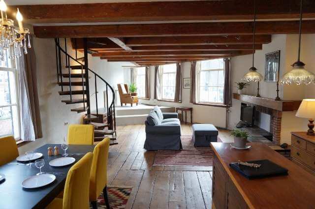 The dining room has great views of the Bloemgracht and the living room has a spectacular view of the Prinsengracht.