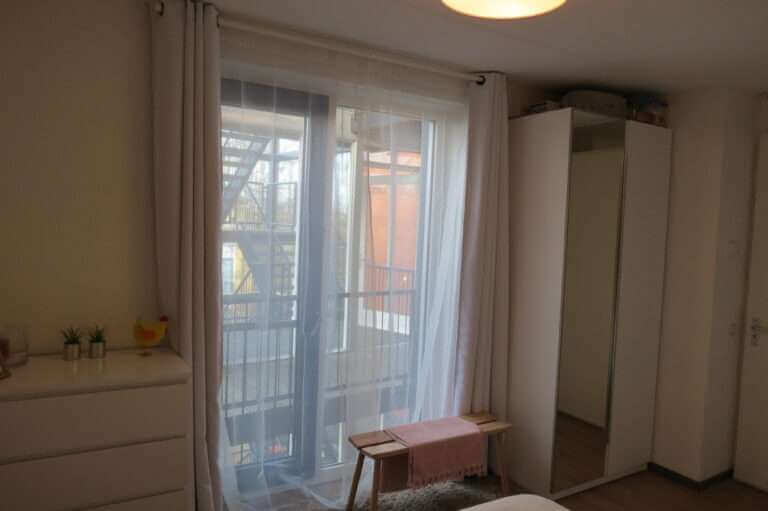 Furnished 2-room apartment located in the ecological district Eva-Lanxmeer, Culemborg. This property is therefore equipped with solar panels and underfloor heating. The house is surprisingly light due to the high windows.