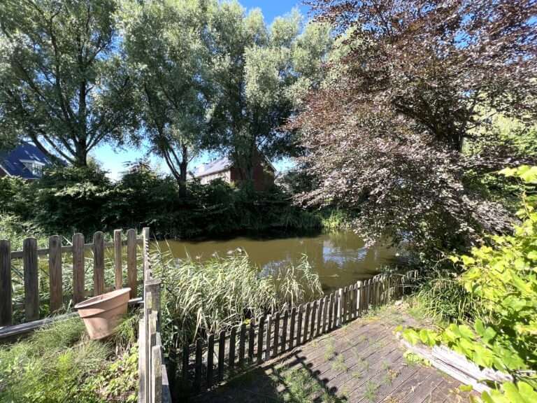The villa has a very private garden adjacent to the water. At the front you have a clear view into the street.