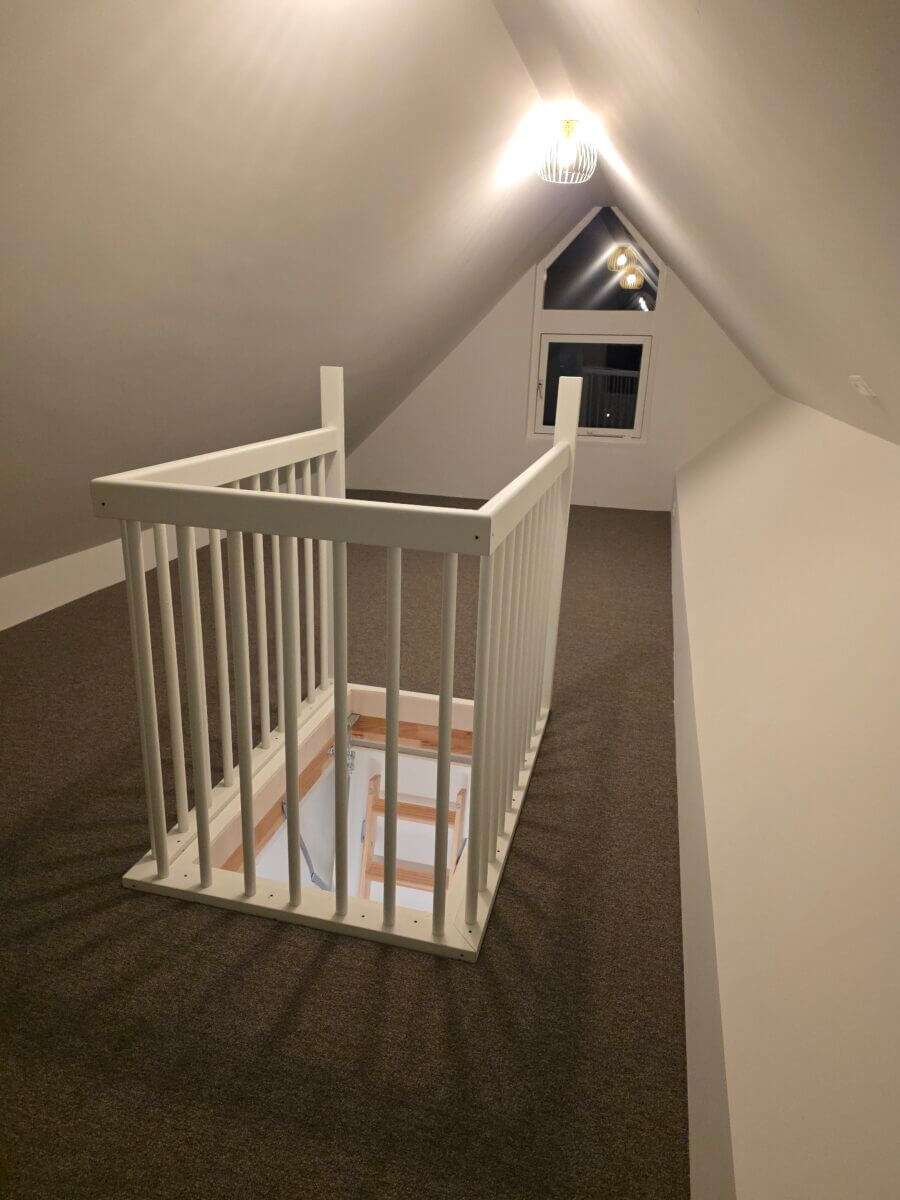 Finally, a loft ladder provides access to a finished attic space that can be used as an extra bedroom or study.