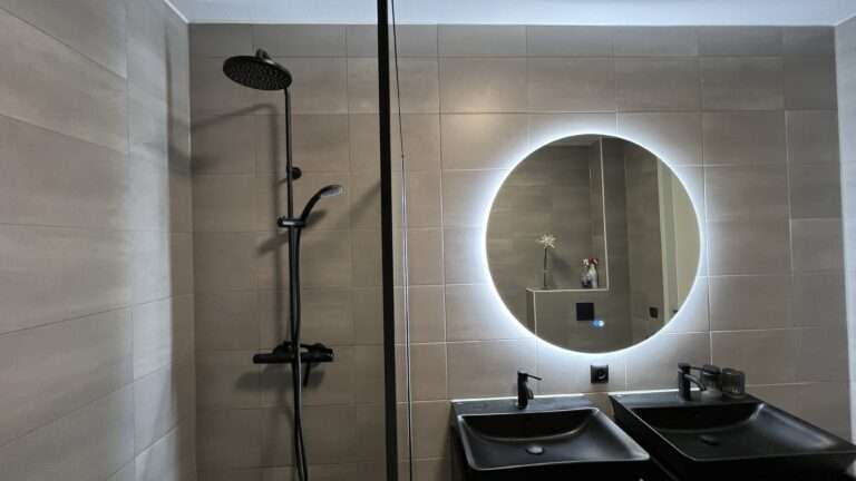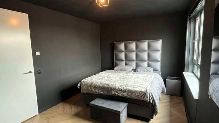 Via the stairs in the hallway, you reach the 1st-floor landing with access to three spacious bedrooms. The modern bathroom is equipped with a spacious walk-in shower with hand and rain shower, washbasin with double sinks and taps and a large mirror with lighting, design radiator and floating toilet.