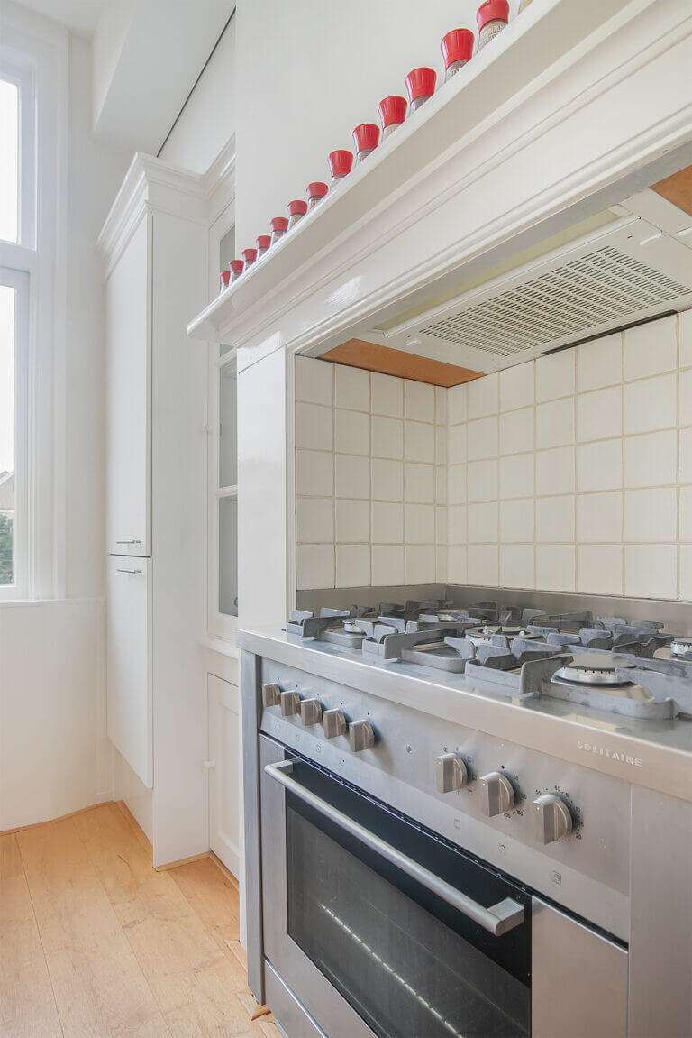 Upholstered upstairs apartment with fantastic roof terrace and beautiful original ornamental ceilings.