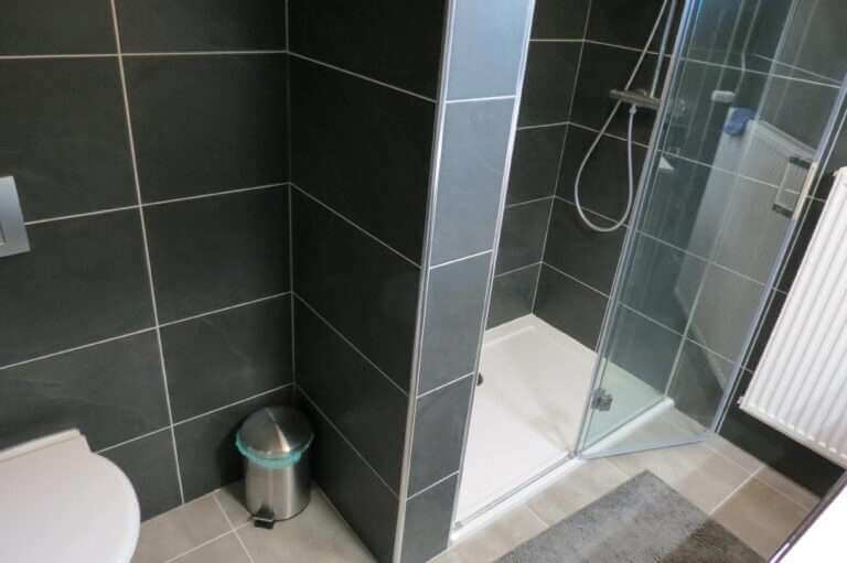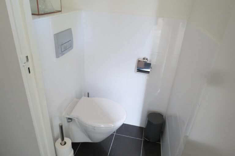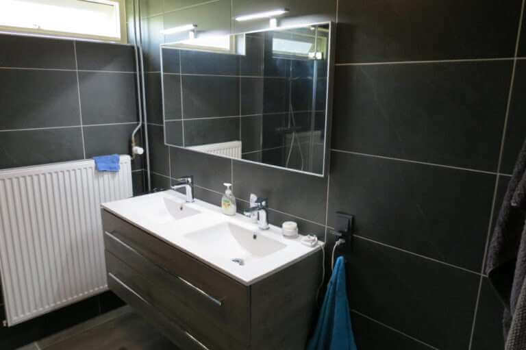 1st floor; Overflow, 2 large bedrooms (of which 1 with a balcony) and 1 smaller room at the rear. Beautiful modern bathroom with rain shower, double sink and toilet. The first floor has a laminate floor.