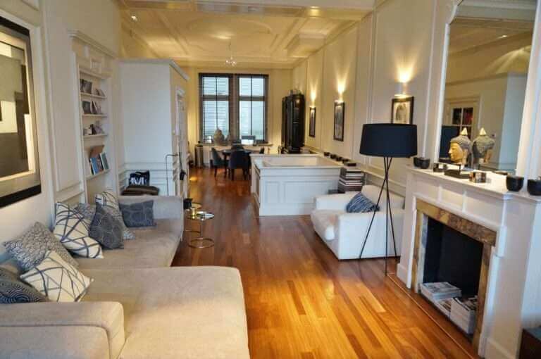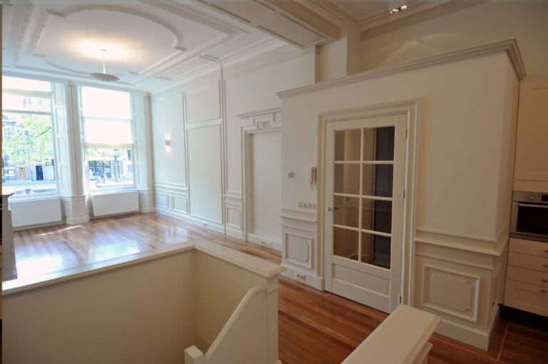 Renovated luxurious four bedroom apartment of 250m2, situated on the Herengracht. The home also features an office and a garden of 120m2 with a guest house. The property covers the entire ground floor of a building from 1620.