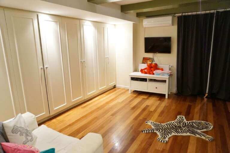 Through the hall behind the entrance, you have access to the property with authentic beamed ceiling, living room and 2 kitchens. Through an internal staircase downstairs you have access to three bedrooms, three bathrooms, guest toilet and a study room/office area.