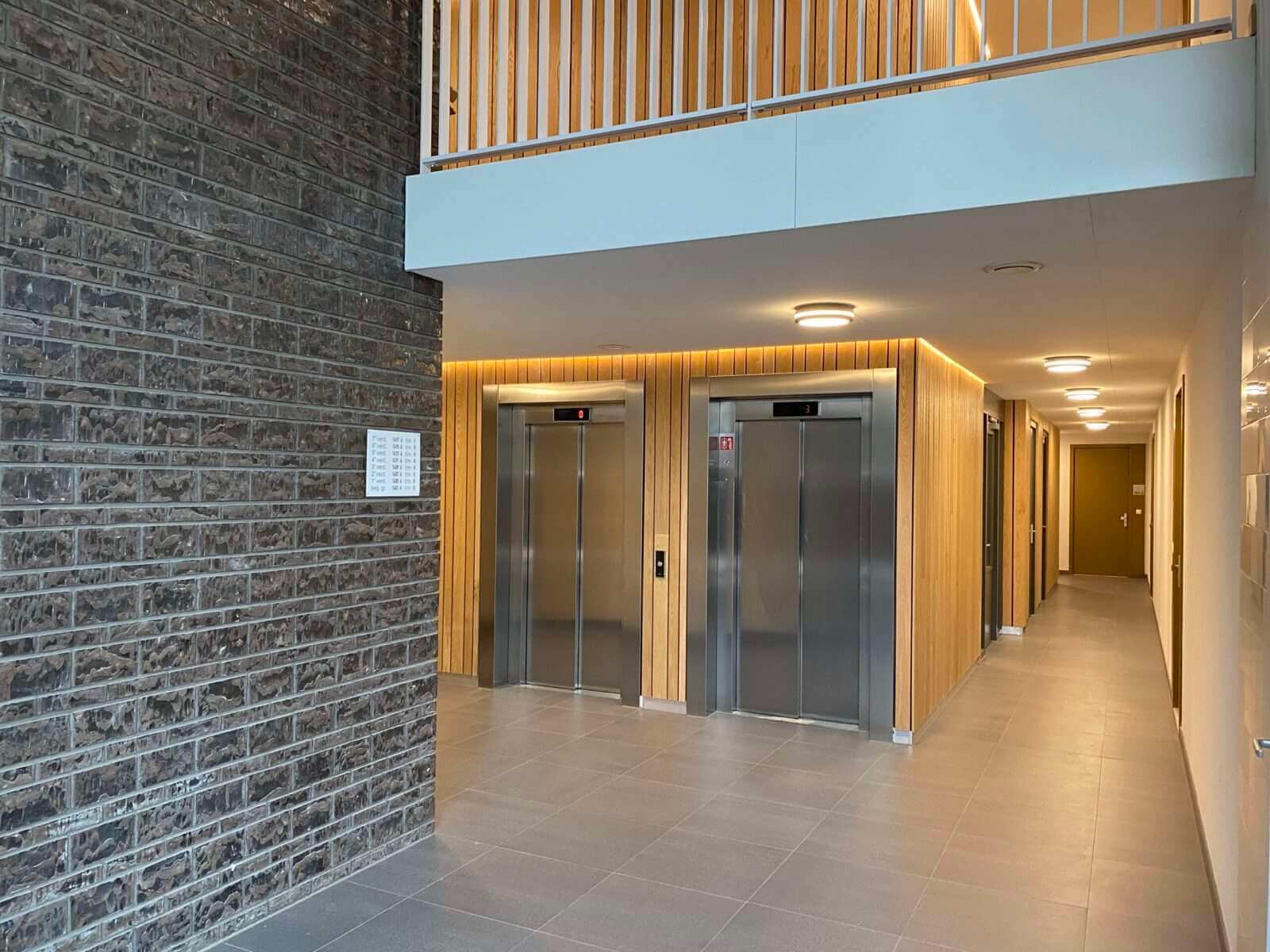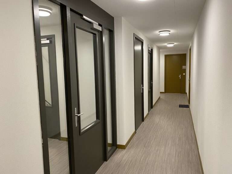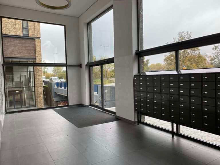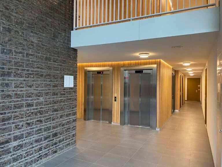 You reach the 5th floor via the main entrance with access to the staircase and the double lift.