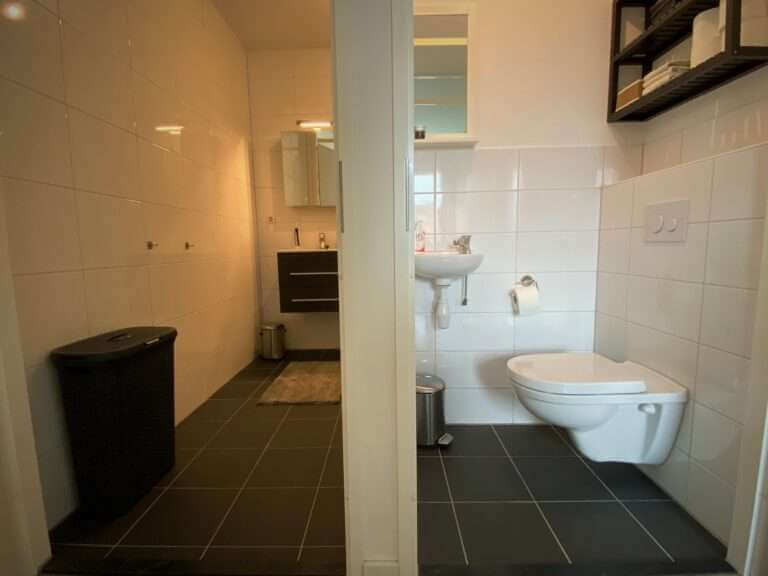 The apartment is also equipped with a modern bathroom and a separate toilet.