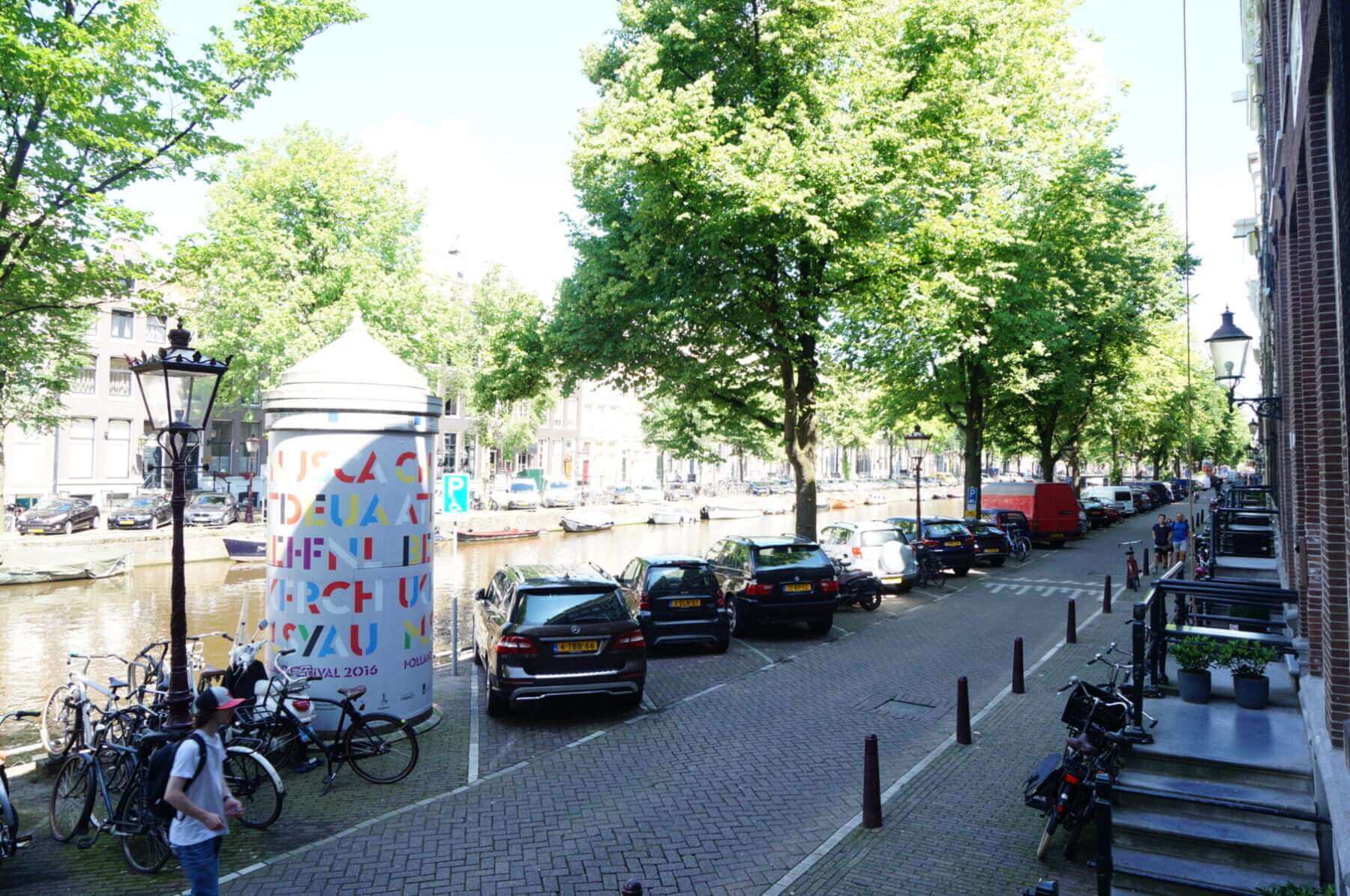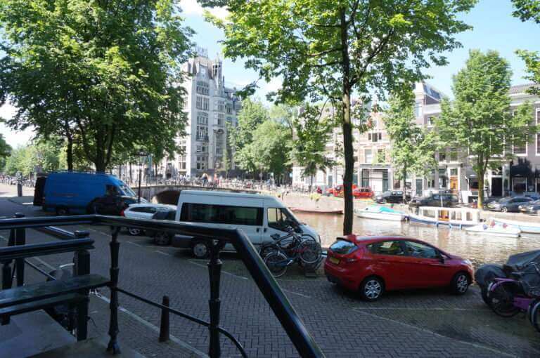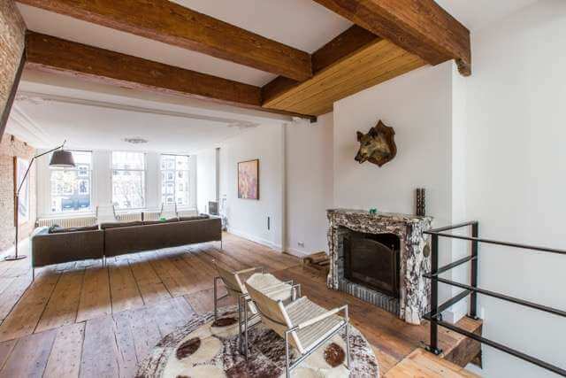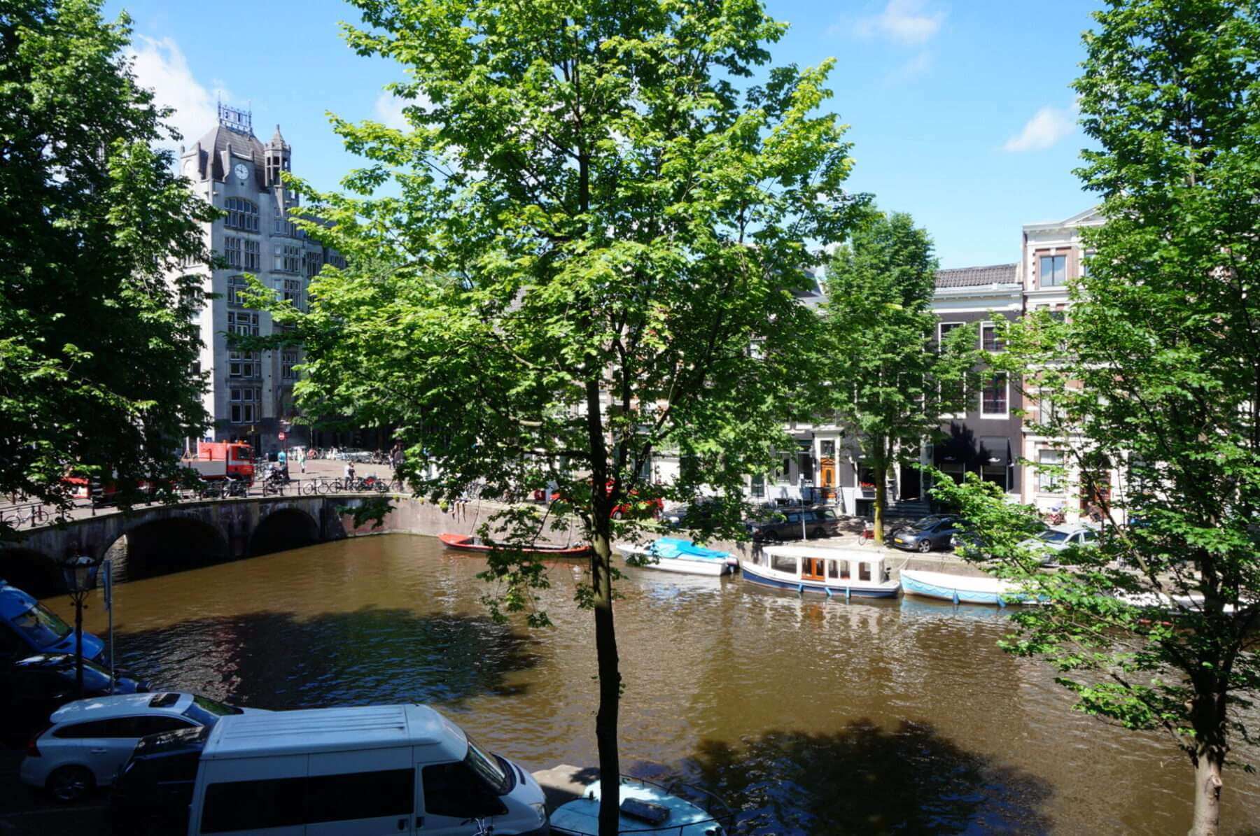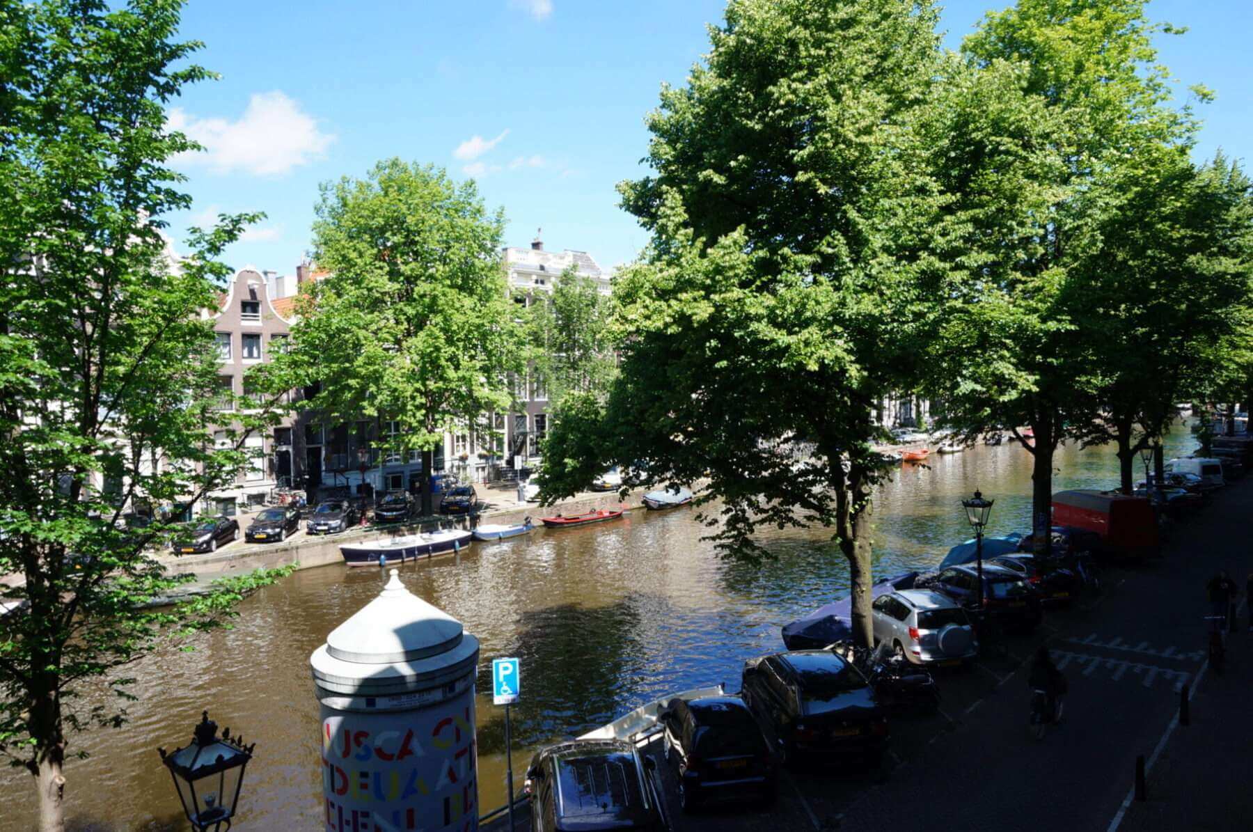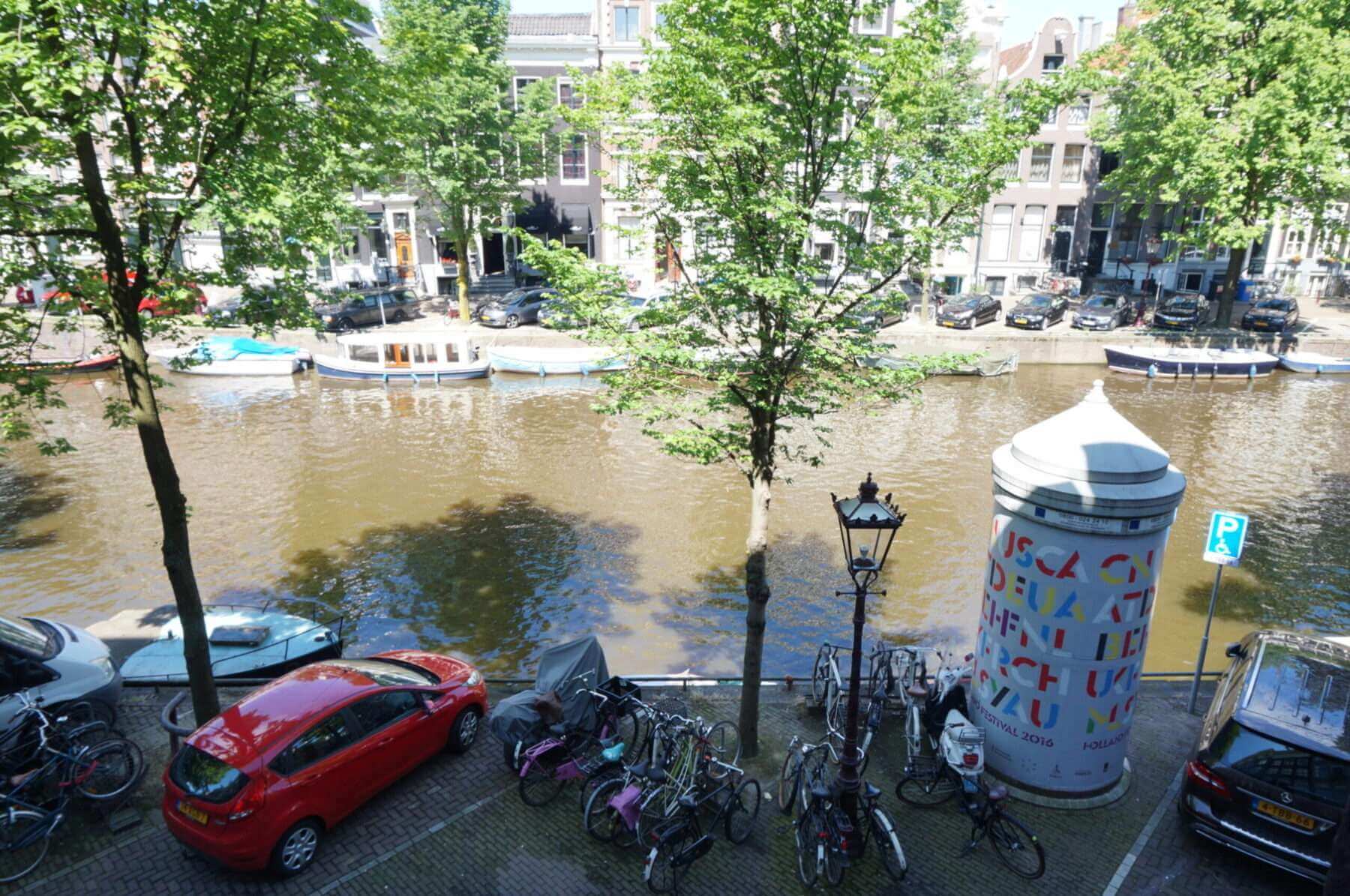 Living room with three windows wide stunning views over the Keizersgracht.