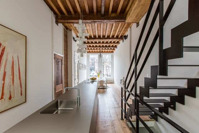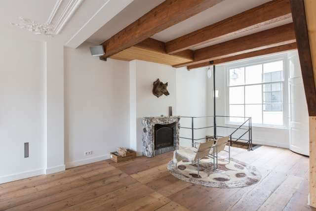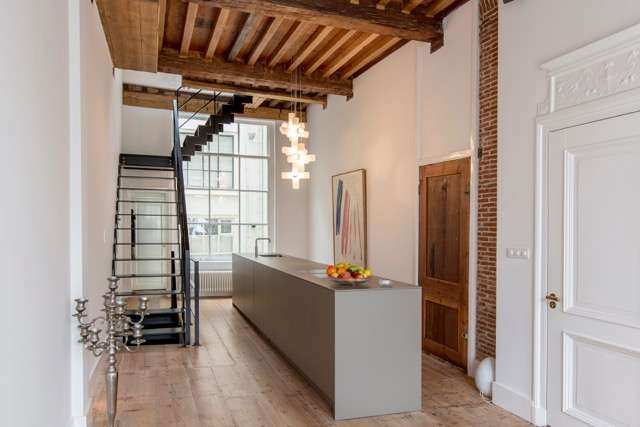 During the renovation many original features are preserved, such as on the ground floor an authentic 4 meter high beamed ceilings, original floors and on the first floor fully restored ornamental ceiling.