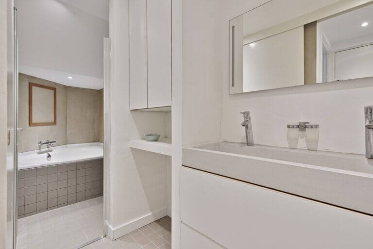 The bathrooms are equipped with a walk-in shower and luxurious sanitary facilities, and one bathroom also has a bath.