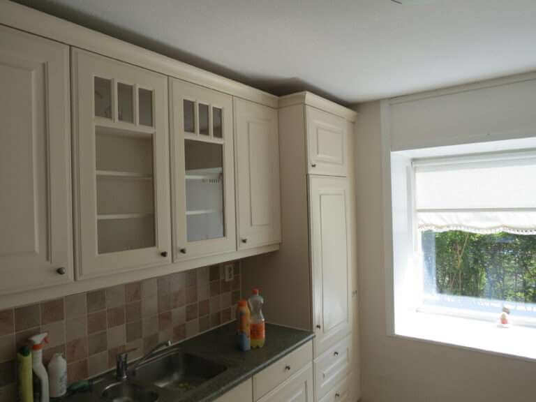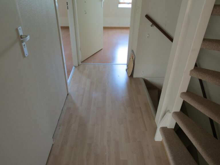 Entrance, hall with toilet, staircase, garden-oriented living room with door to the garden. Open kitchen at the front with great views over the street and place for dining. The kitchen is equipped with appliances including a 4-burner stove, oven, refrigerator, hood and dishwasher. The whole house has a laminate floor.