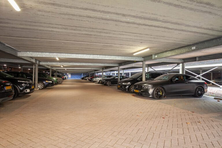 On the ground floor, outside the apartment in the substructure of the apartment complex, you will find a separate storage room of ± 7.5 m² for storing your bicycles and extra storage space. Through the main entrance of the apartment complex you also have access to the parking garage located behind the building.