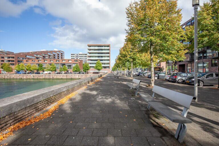 Formerly a real dock workers’ place, now you can live here beautifully with an overwhelming view. The Kop van Zuid is a child-friendly, lively and above all centrally located neighborhood with all amenities within easy reach. Various shops, large supermarkets such as Albert Heijn and Jumbo and restaurants can be found within walking and cycling distance. For example, you can go to the shopping street ‘Vuurplaat’ and the Entrepotgebouw for your daily shopping and you are within a few minutes in the bustling city center for shopping.