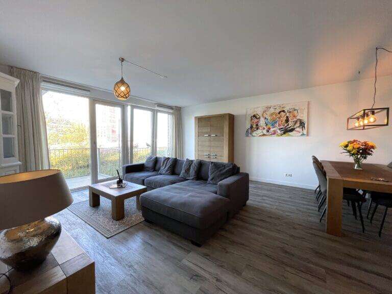 On the trendy Zeeburgereiland in Amsterdam East, you’ll find this spacious two-bedroom apartment with an elevator, a large balcony, and a private parking space in the underground garage.