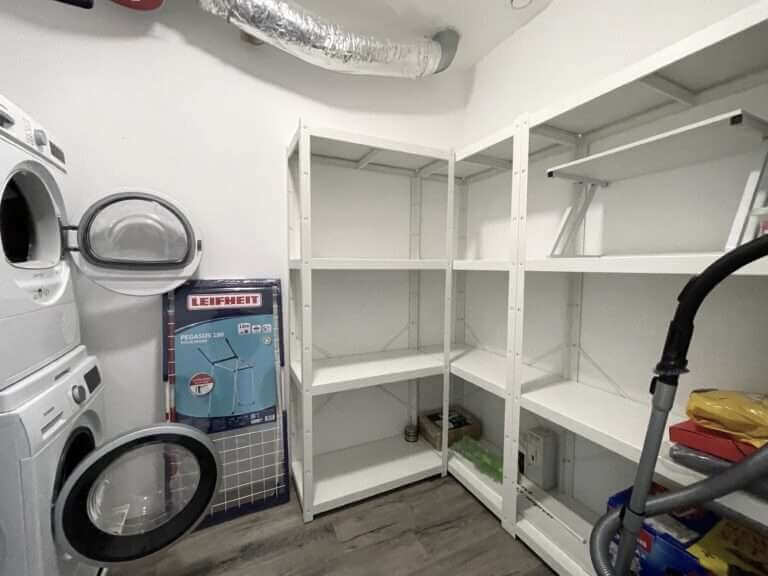 This apartment is complete with a spacious indoor storage unit and a private parking space in the garage underneath the building.