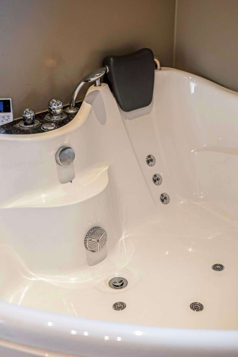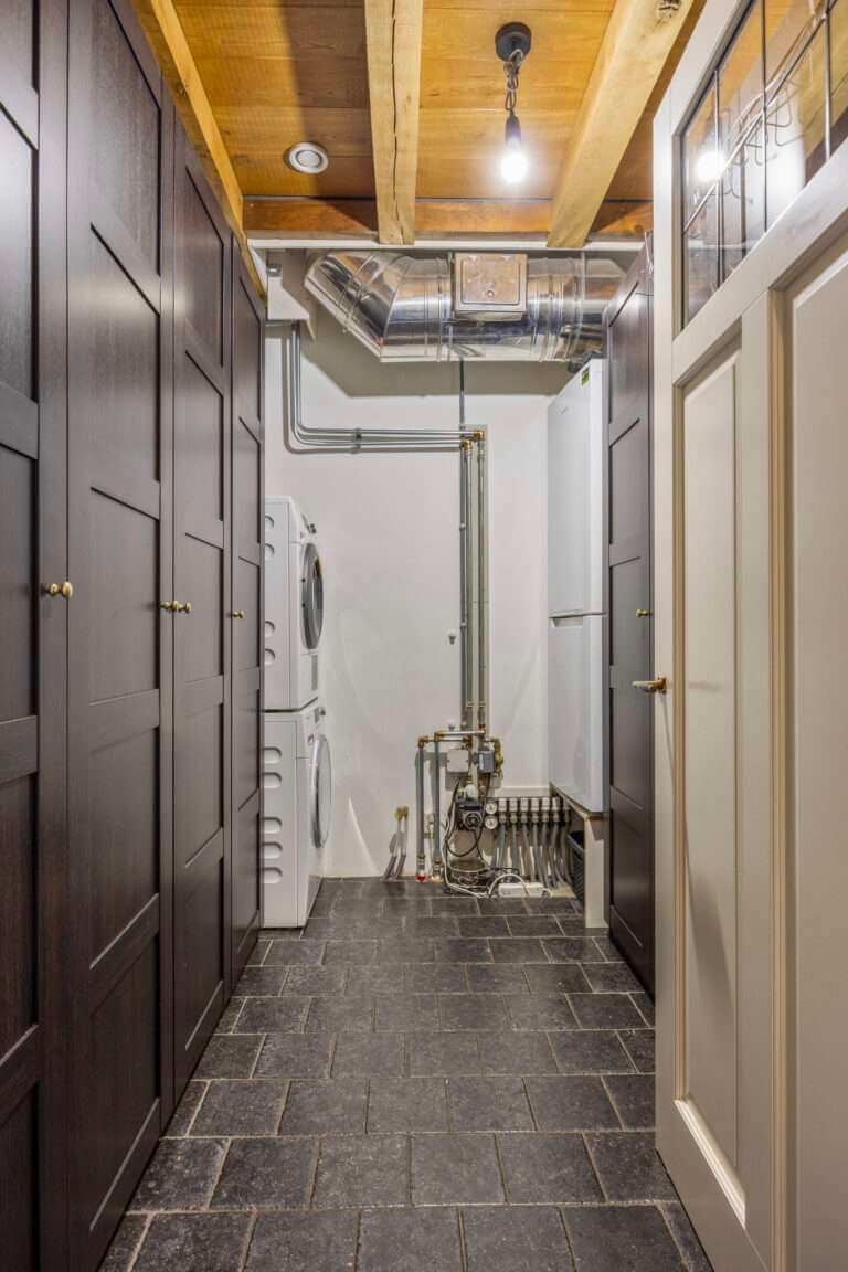 Through the entrance you enter the rich hall with pleasant light, high ceiling and staircase to the 1st floor. The hall also provides access to all rooms on the ground floor such as the living room with cozy kitchen, a beautiful office space annex spacious bedroom, a hall with access to the luxurious bathroom, separate laundry room with fitted wardrobes and washing machine and dryer connection and a separate guest toilet. The bathroom is luxuriously laid out with a jacuzzi, shower, sink with large mirror and casing and toilet.