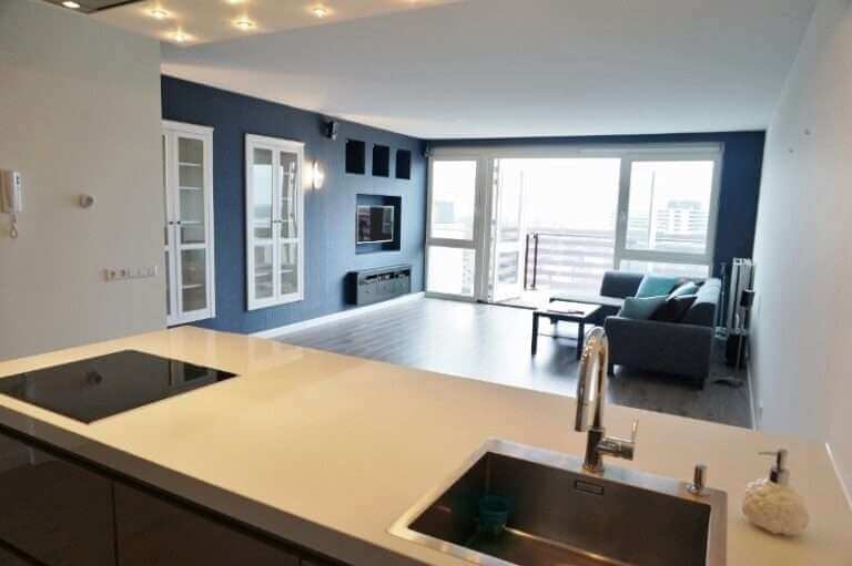 Spacious modern 3 bedroom maisonette, very well maintained, situated on the 10th and 11th floor, with remarkable views and large terrace facing Southwest. Private parking in garage.