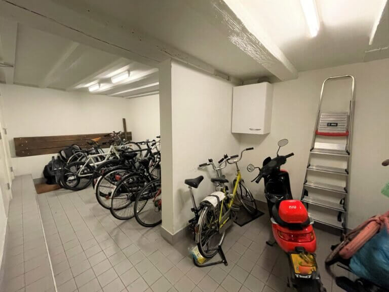In the building you use the elevator, central bicycle shed and a private storage room.