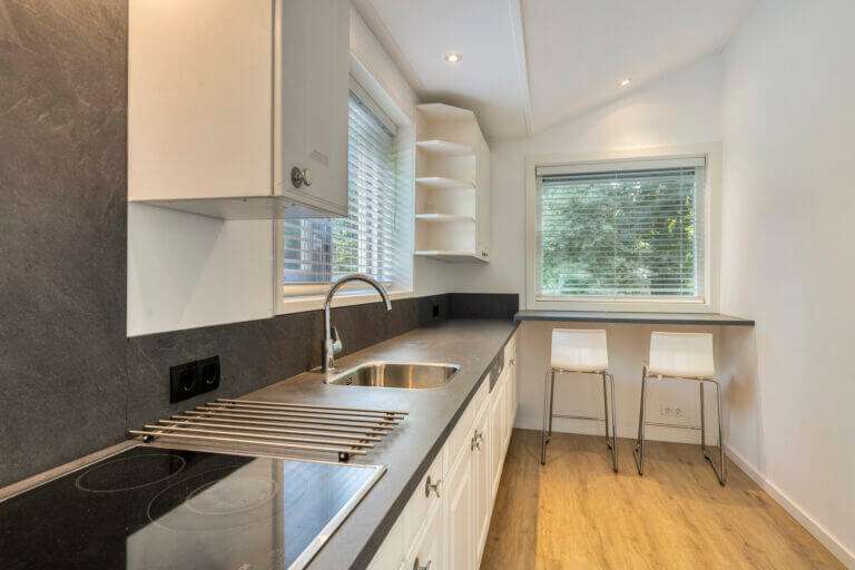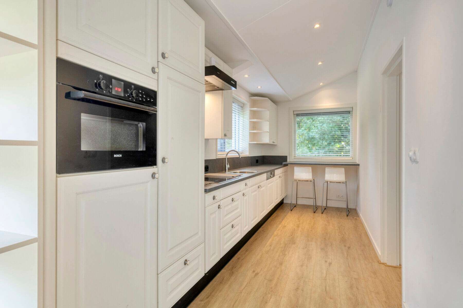 The house has recently been completely modernized, is highly energy-efficient (energy label A+++), and features two bedrooms, a modern kitchen with built-in appliances, and a modern, spacious bathroom. The house is connected to the Reeuwijkse Plassen lakes via a short canal, making it possible to create a mooring for a sloop in consultation with the landlord.