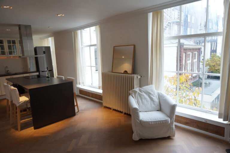 The house is situated at the Prinsengracht, in the back building on the 2nd floor of a monumental building from 1800.