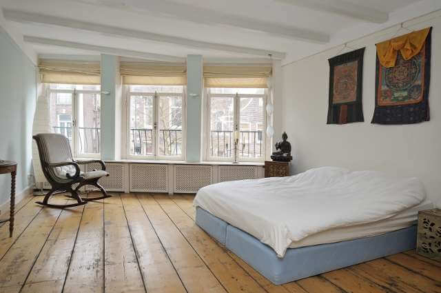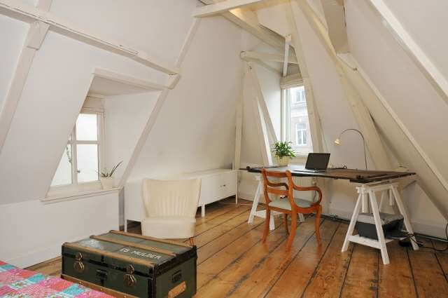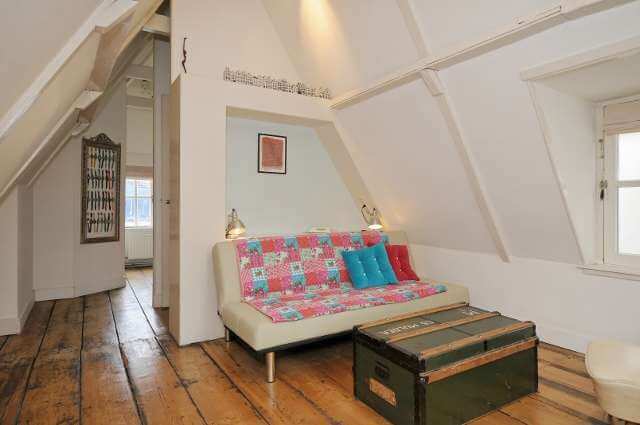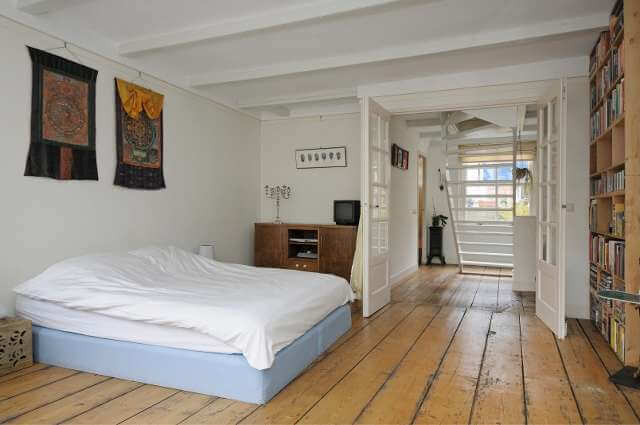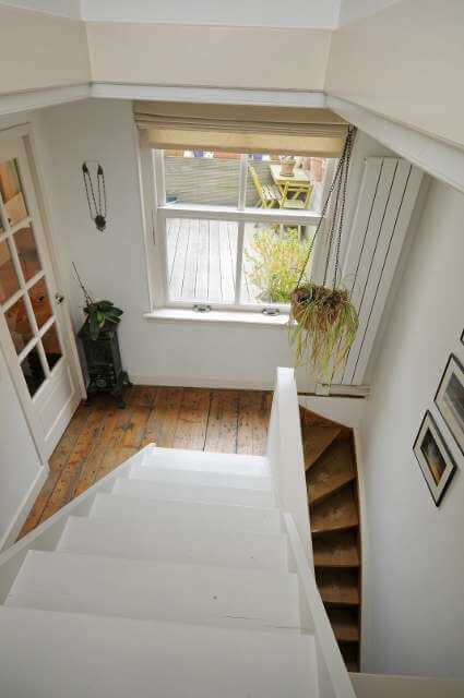 An open wooden staircase, finally, leads to the third floor where you will find the light bedroom or study.
