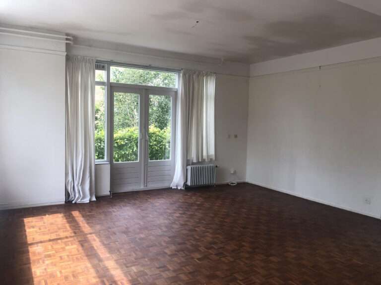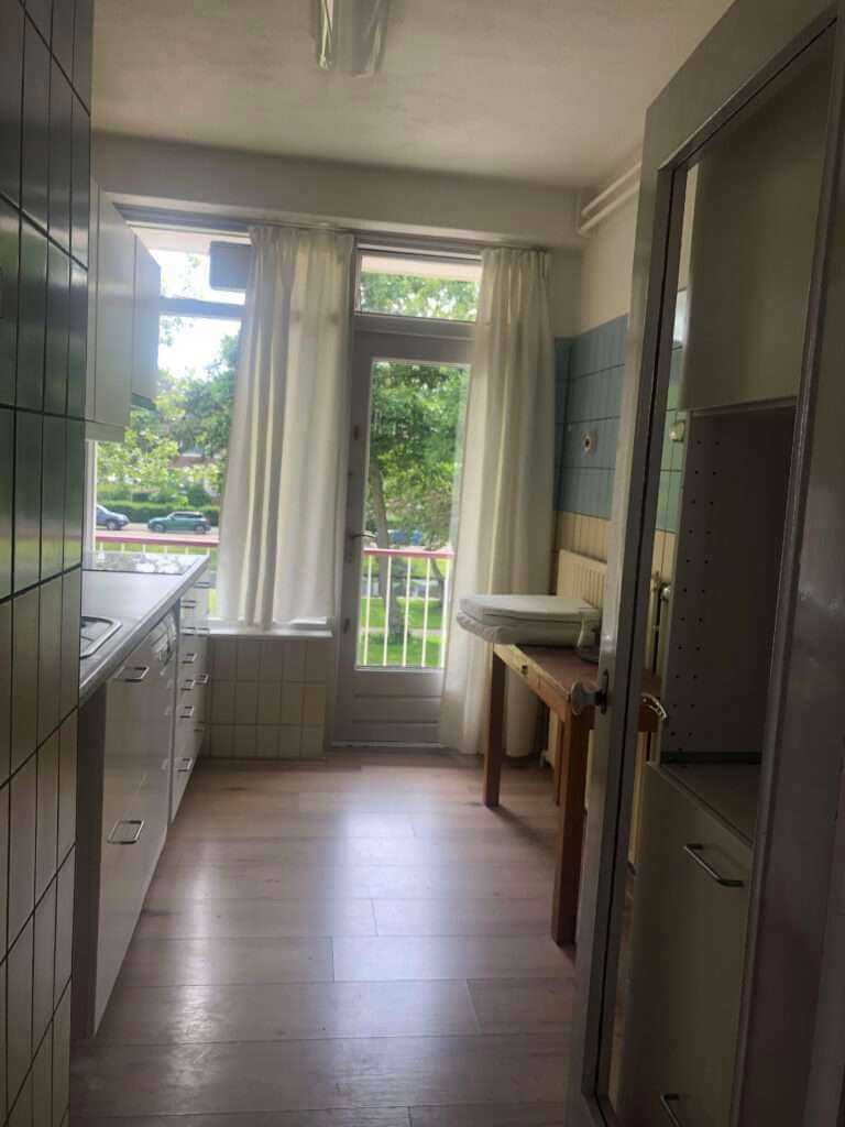 Spacious and sunny living room with unobstructed view. The living room has a parquet floor. The other rooms, the hall and the kitchen have a modern laminate floor. The simple kitchen is equipped with a dishwasher, induction hob and a boiler.