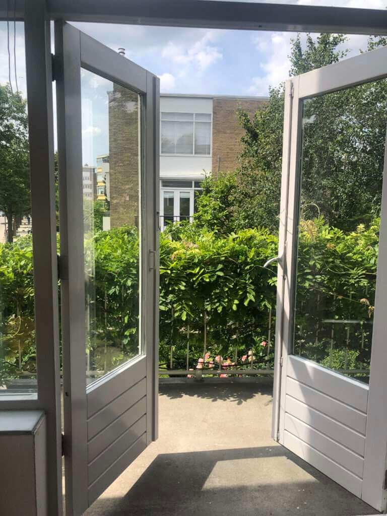 Spacious southwest-facing balcony at the front with a beautiful and unobstructed view of the canal, among other things. This balcony is accessible from both the living room and the kitchen. The second balcony is located on the north and is also accessible from the living room. The third balcony is located at the rear on the Northeast. This balcony is accessible via the bedroom.