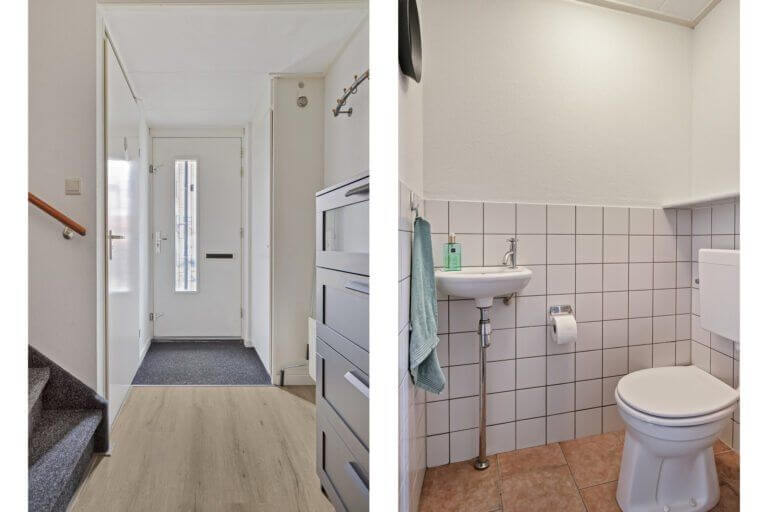 Front garden, entrance, hall, separate toilet, staircase to the 1st floor.