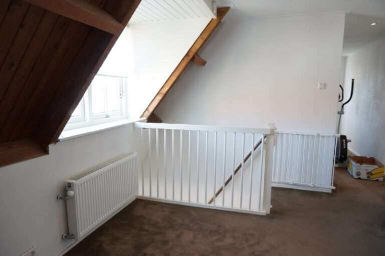 Landing, 2 bedrooms and bathroom with tub, separate shower and toilet.