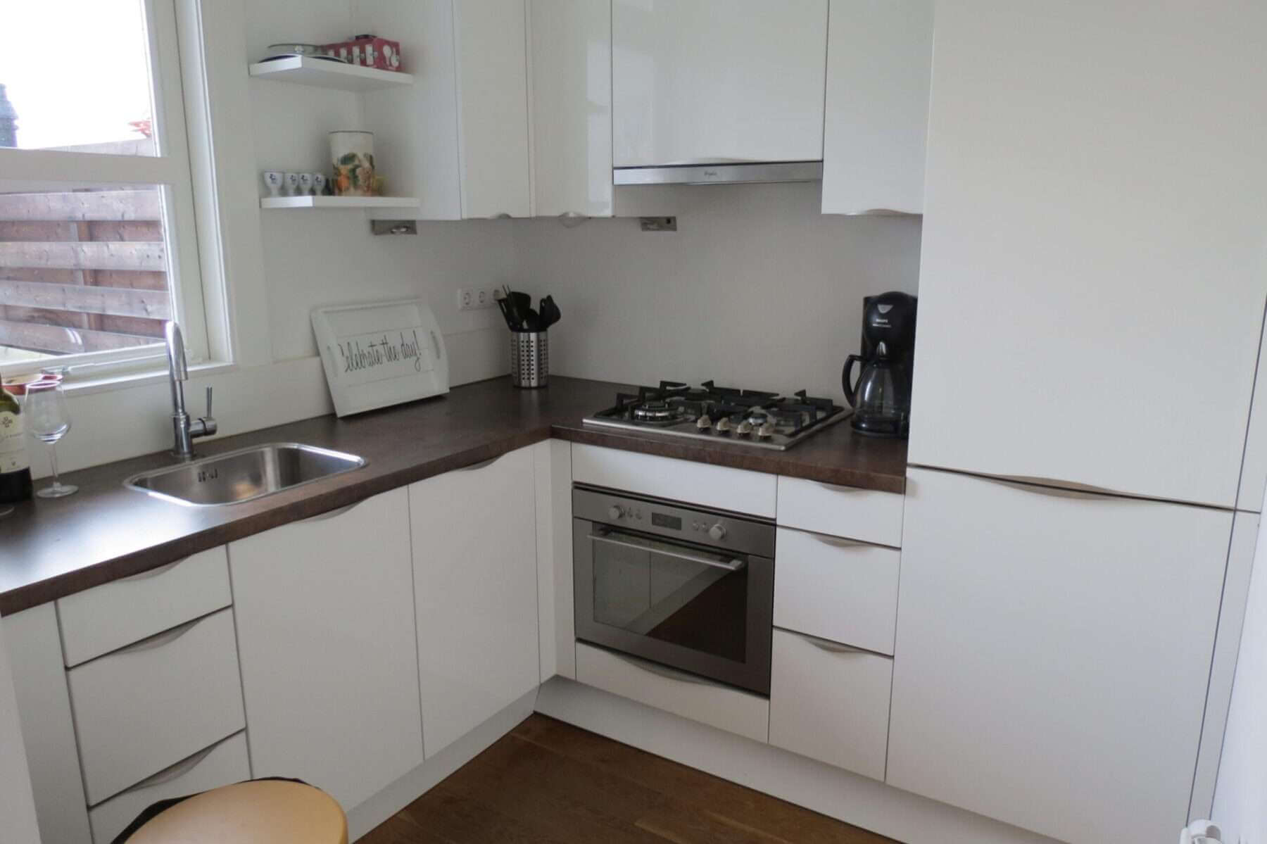 Spacious, new, half open kitchen with gas hob, extractor hood, fridge-freezer, oven and dishwasher.