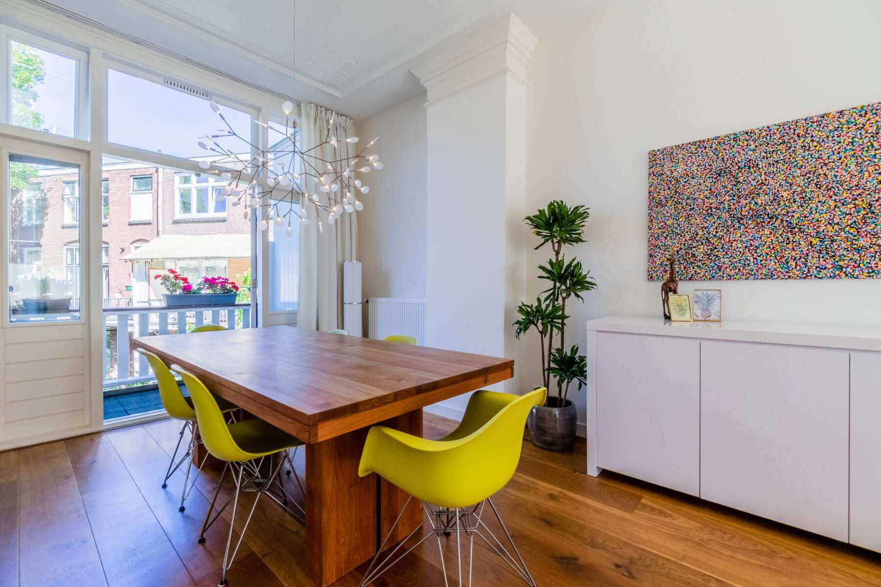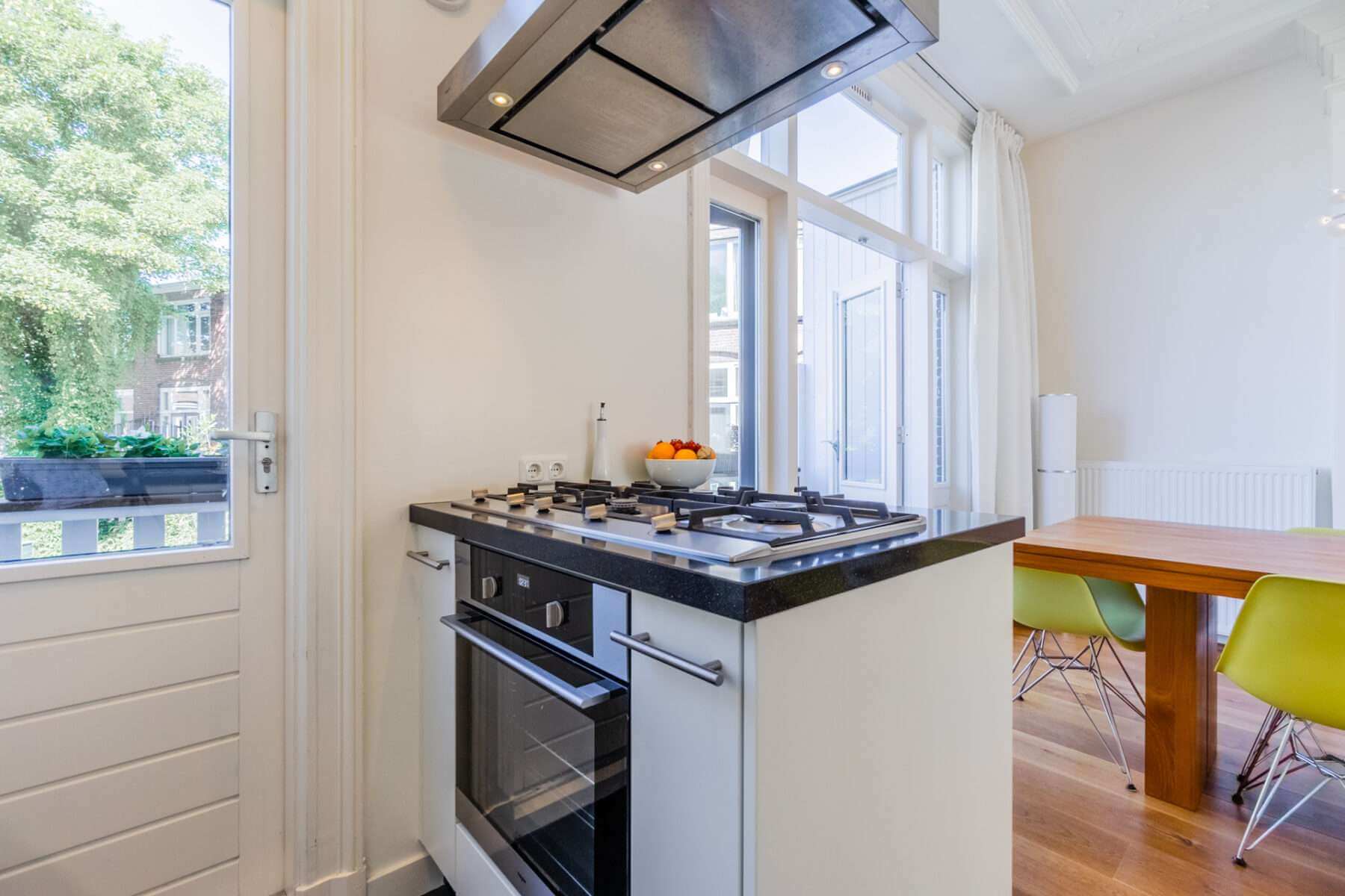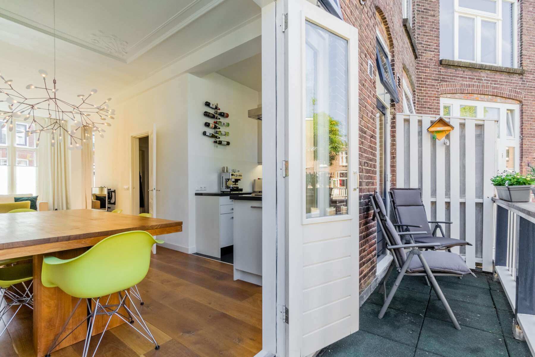 Via de eetkamer bereik je door middel van openslaande deuren het grote balkon aan de achterzijde van de woning, waar je de middag- en avondzon hebt.