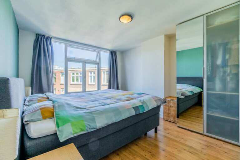 Gestoffeerde bovenwoning met twee slaapkamers en twee balkons te huur!