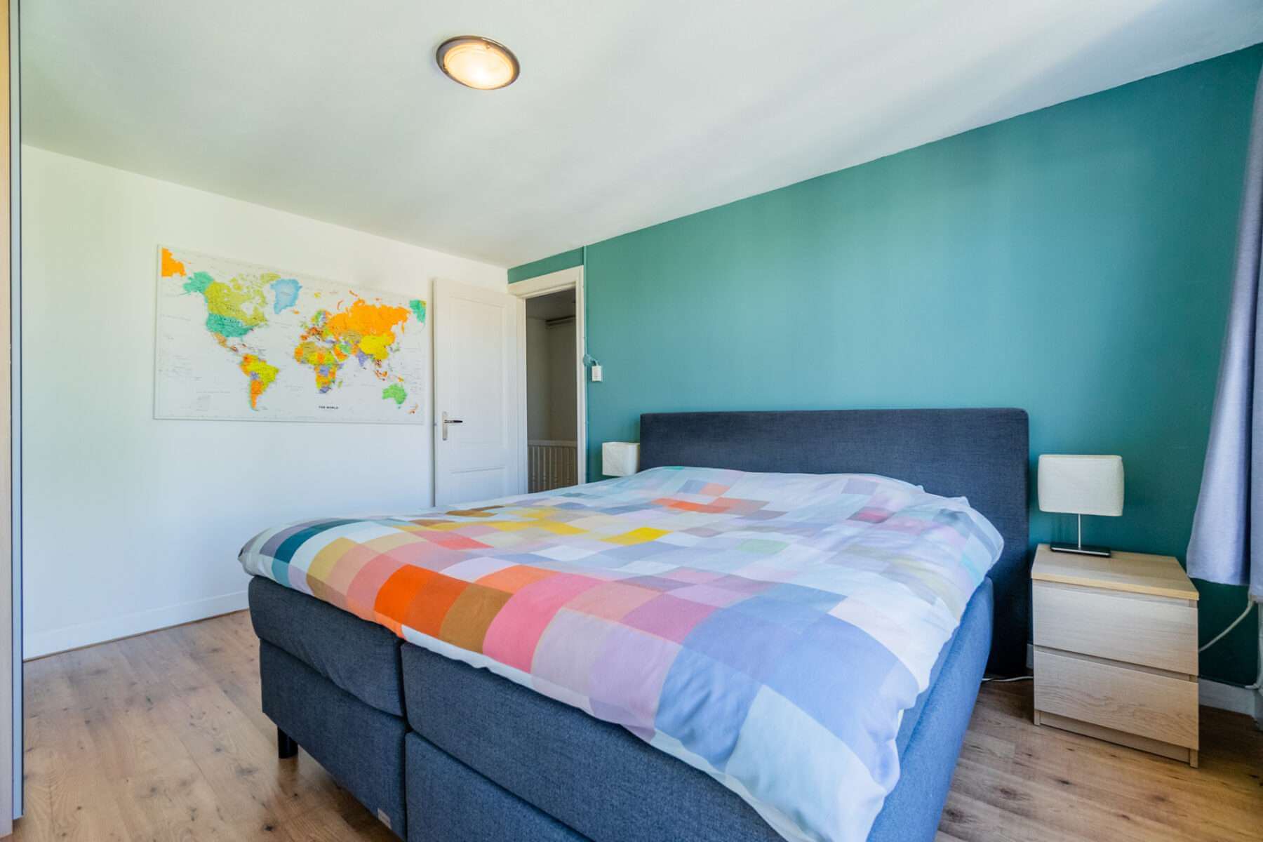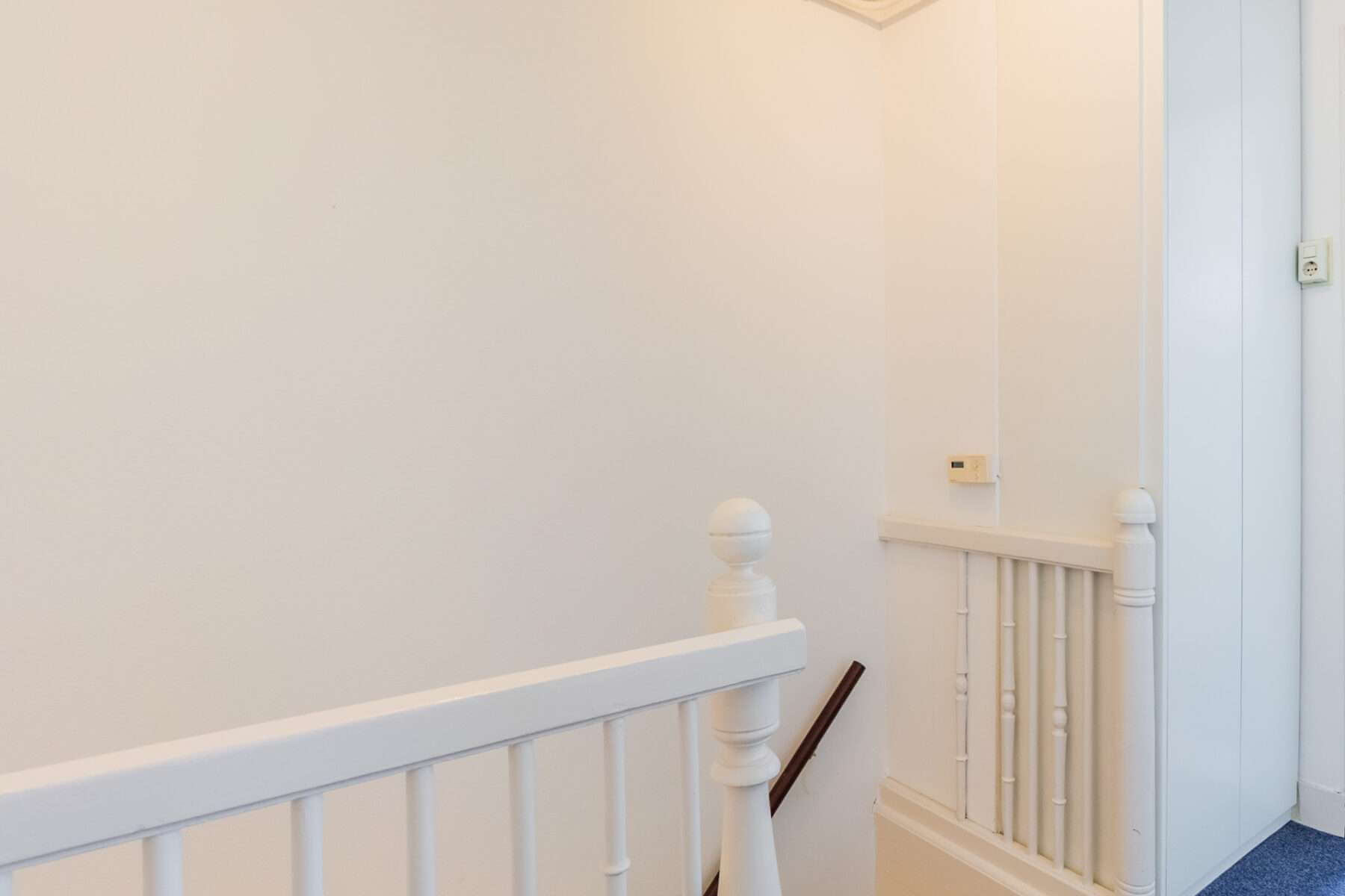De overloop met vaste kast geeft toegang tot de twee ruime slaapkamers met veel lichtinval.