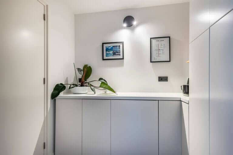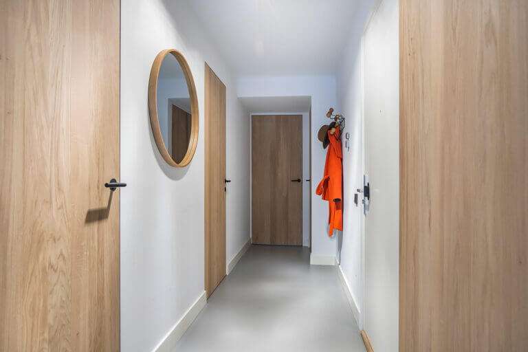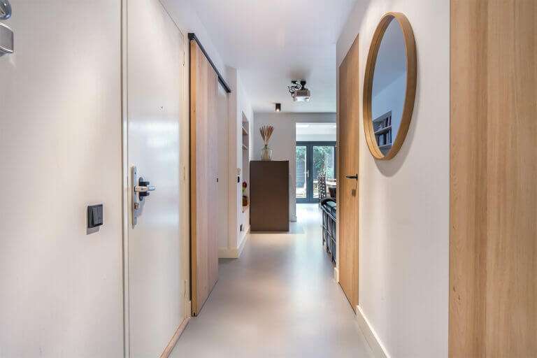 Via de hal bereikt u ook de andere vertrekken, zoals de master bedroom, de luxe badkamer met ligbad, ruime inloopdouche, toilet en wastafelmeubel, de tweede slaapkamer en derde slaapkamer, die tevens ook zeer geschikt is als kantoorruimte.