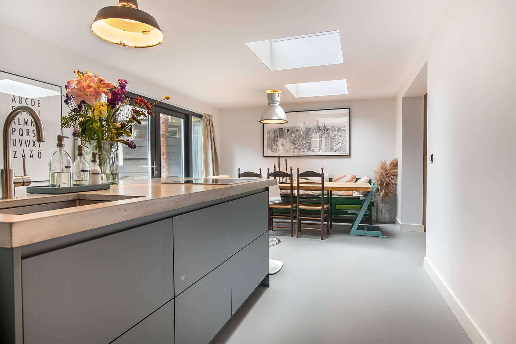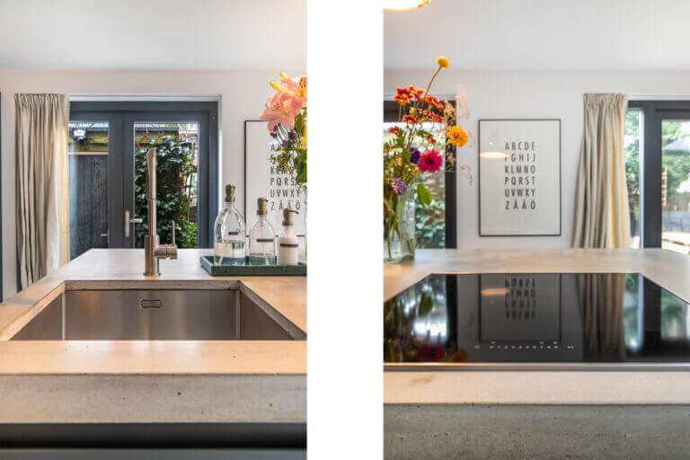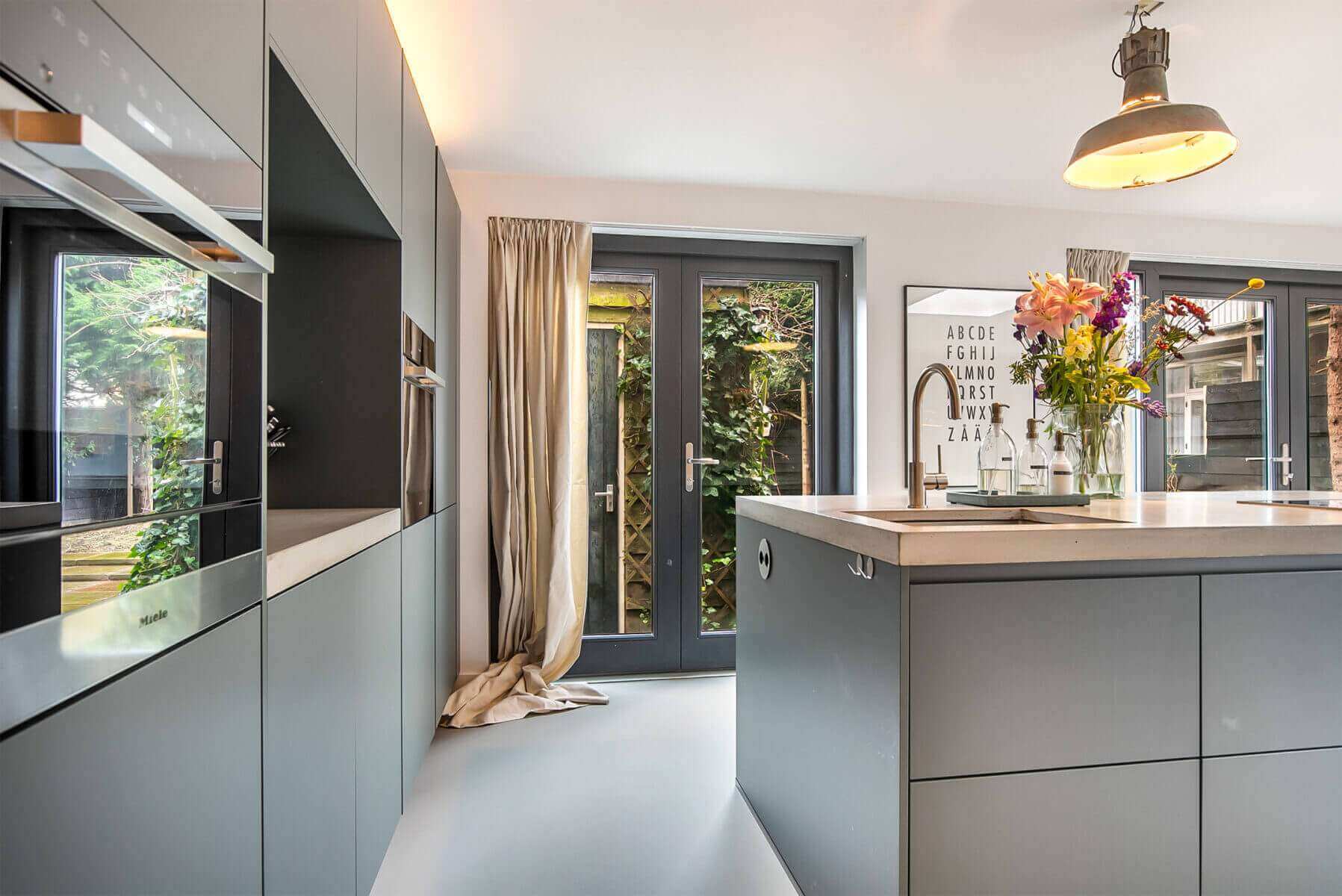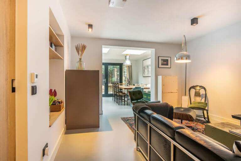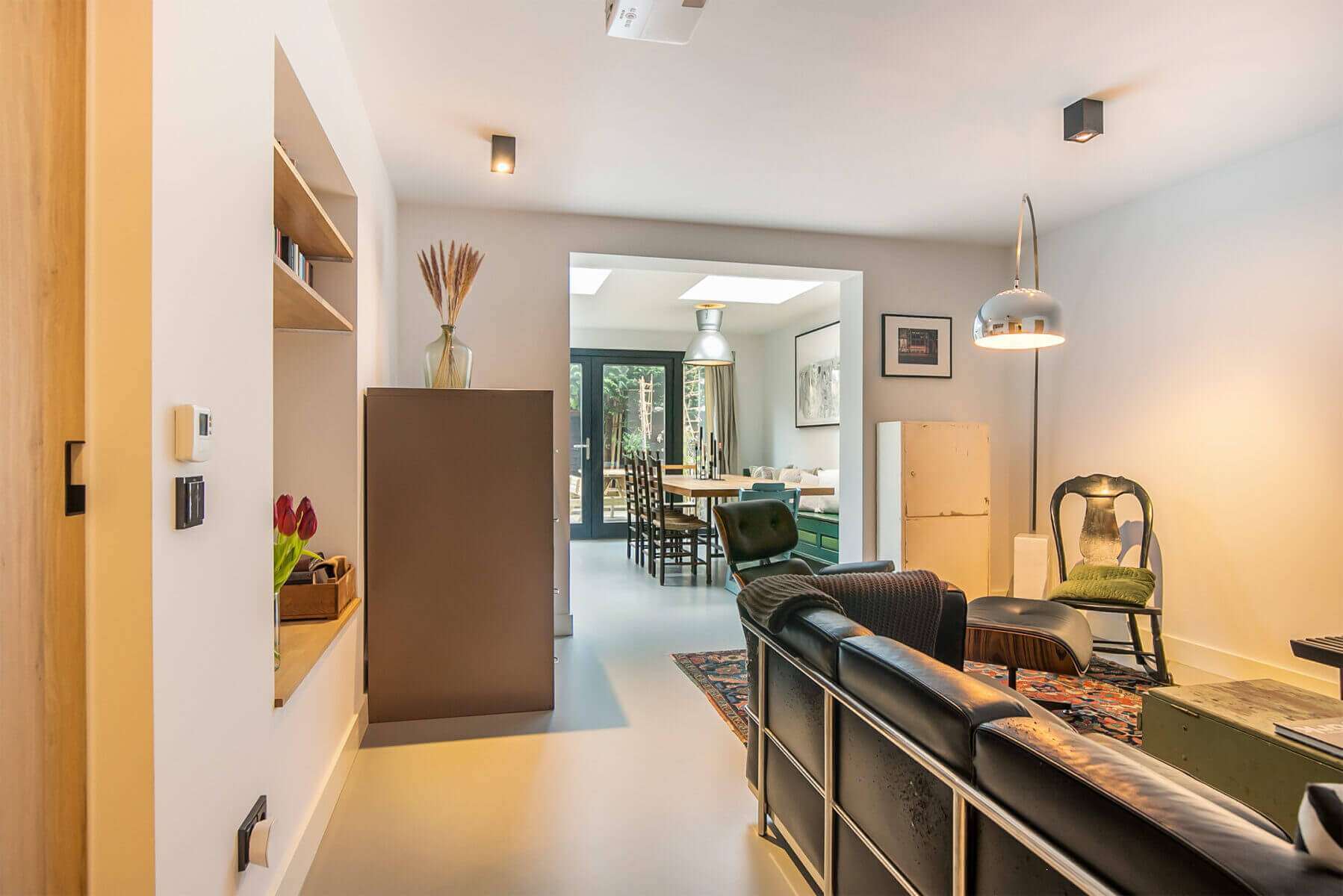 Middels openslaande deuren in de living bereikt u de fijne tuin met eigen achterom en afsluitbare poort.