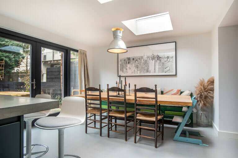 Volledig met hoge kwaliteit gerenoveerd 3 slaapkamer appartement met tuin, gelegen in het populaire Amsterdam-West.