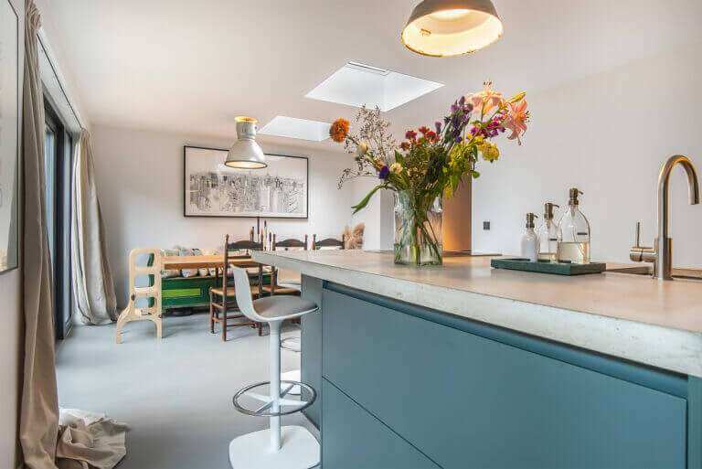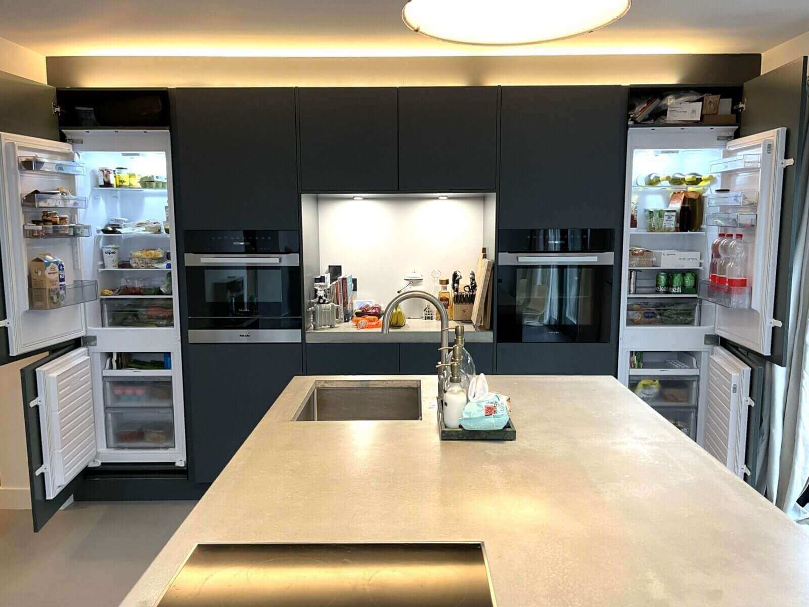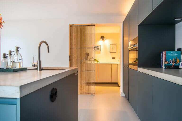 Via de hal bereik je de ruim opgezette living, bestaande uit een woon en eetruimte met open keuken. De keuken met kookeiland en gezellig bargedeelte is van alle gemakken voorzien, plus dubbele koelkast en vriezer. Naast de open keuken bevindt zich ook nog een ruime pantry plus separate toiletruimte.