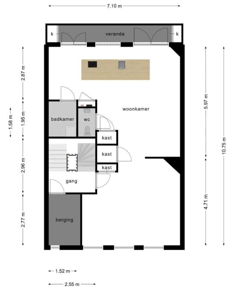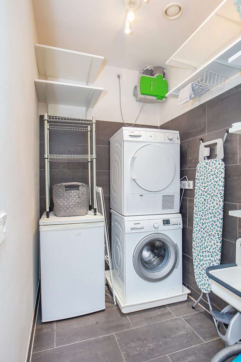 Ook niet onhandig; vanuit de leefkeuken loopt u zo het ruime washok in.
