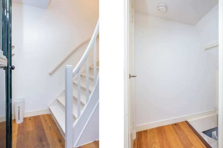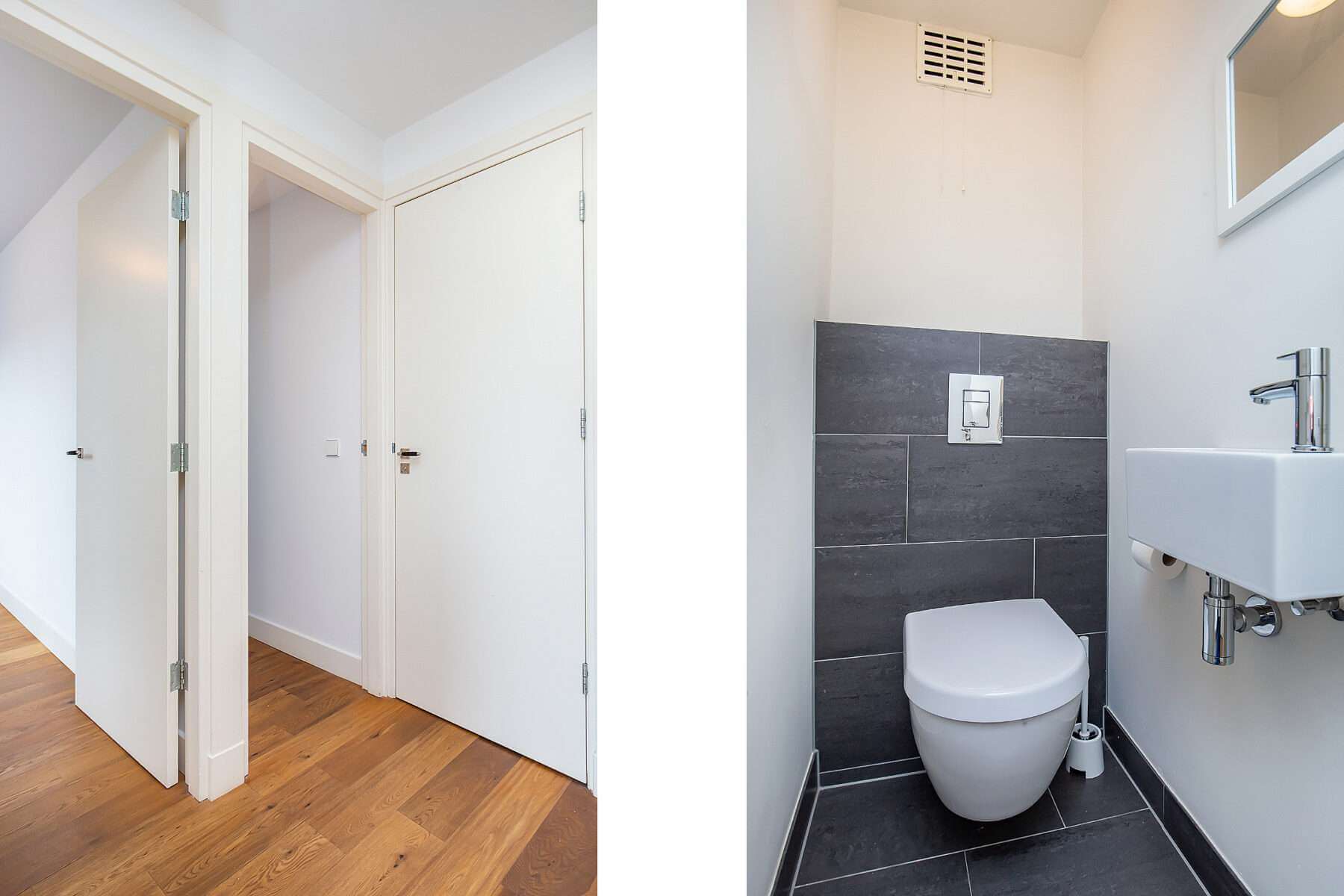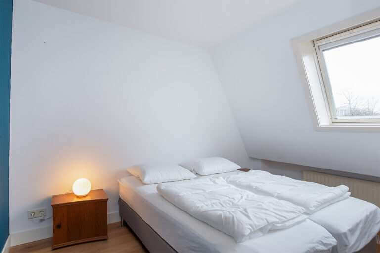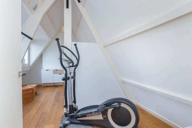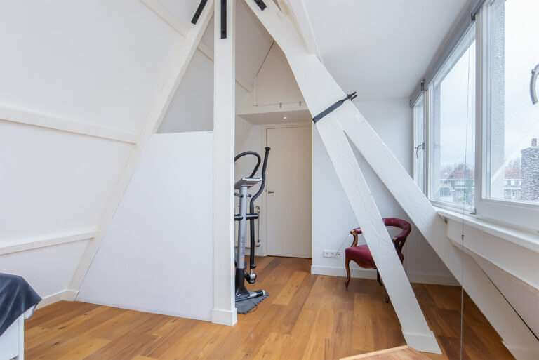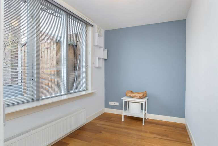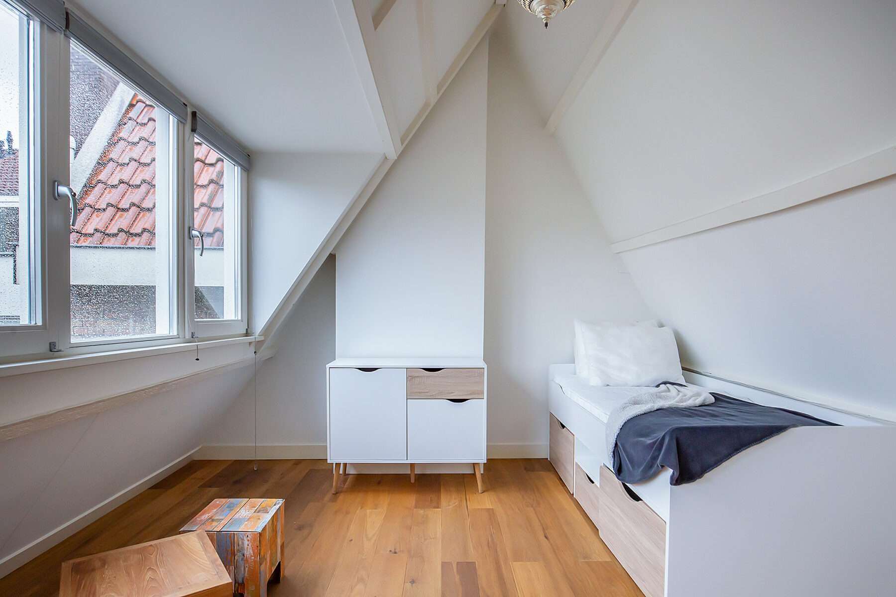 Op de bovenste vierde verdieping bevindt zich de lichte derde slaapkamer.