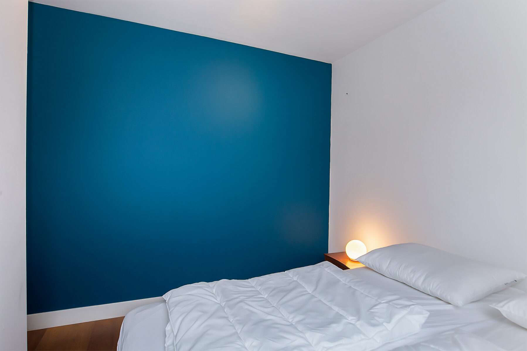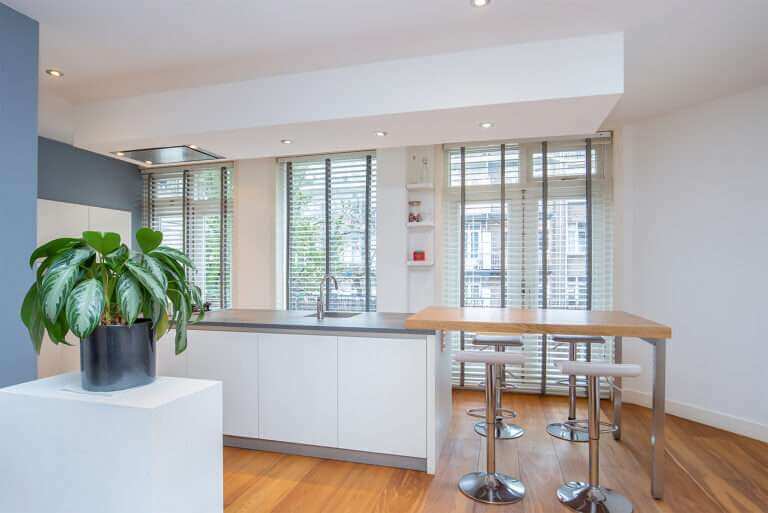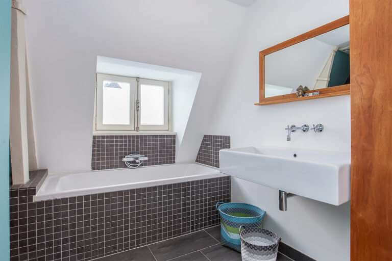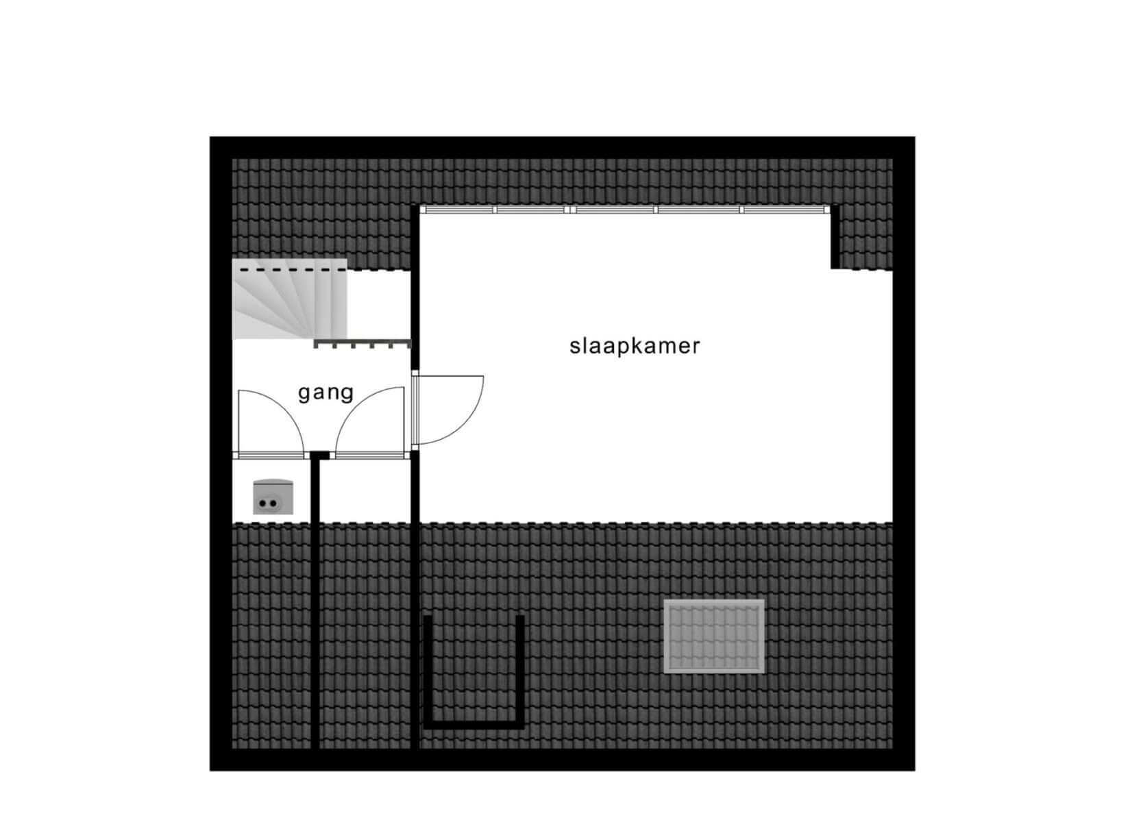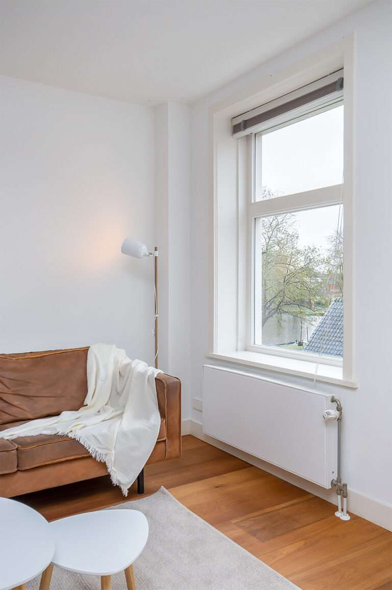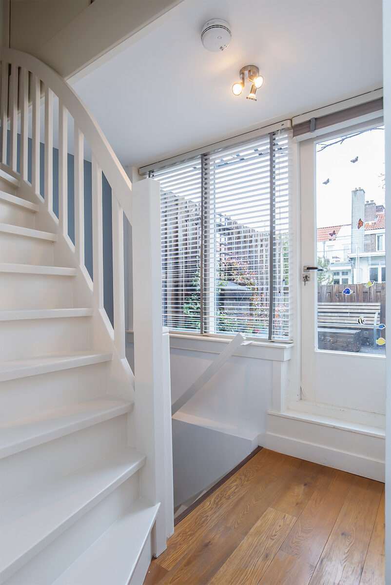 Op de bovenste vierde verdieping bevindt zich de lichte derde slaapkamer.
