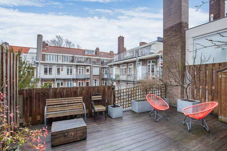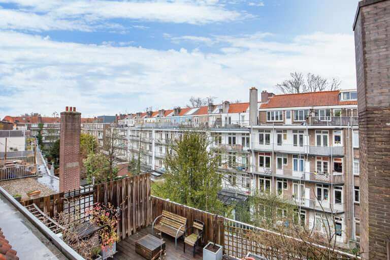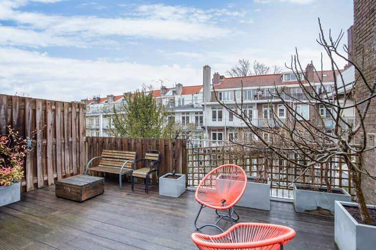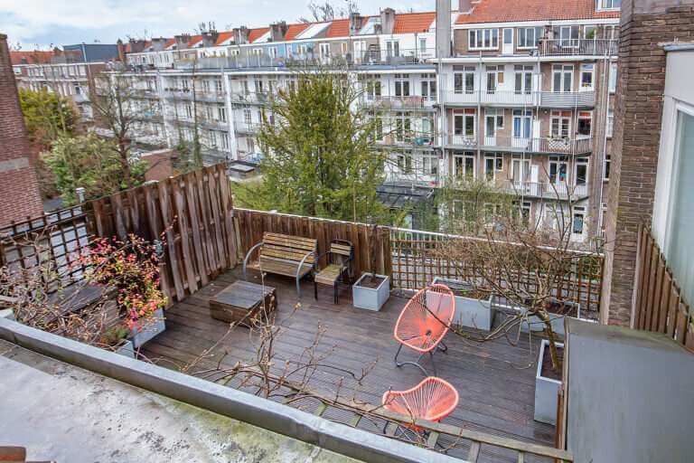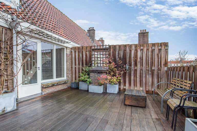 Op de derde verdieping bevinden zich twee slaapkamers, inloop kledingkast, apart toilet en ruime badkamer met ligbad, dubbele wastafel en inloopdouche. Via deze verdieping komt u ook uit op het ruime dakterras met prachtig uitzicht over de binnentuinen.