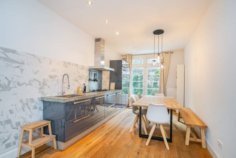 Deze luxe woning is van alle gemakken voorzien. De keuken kenmerkt zich door moderne apparatuur en is compleet uitgerust.