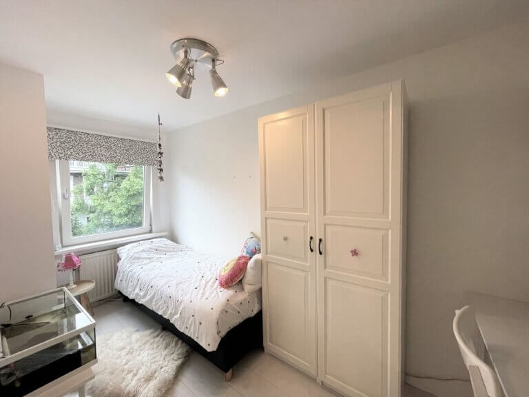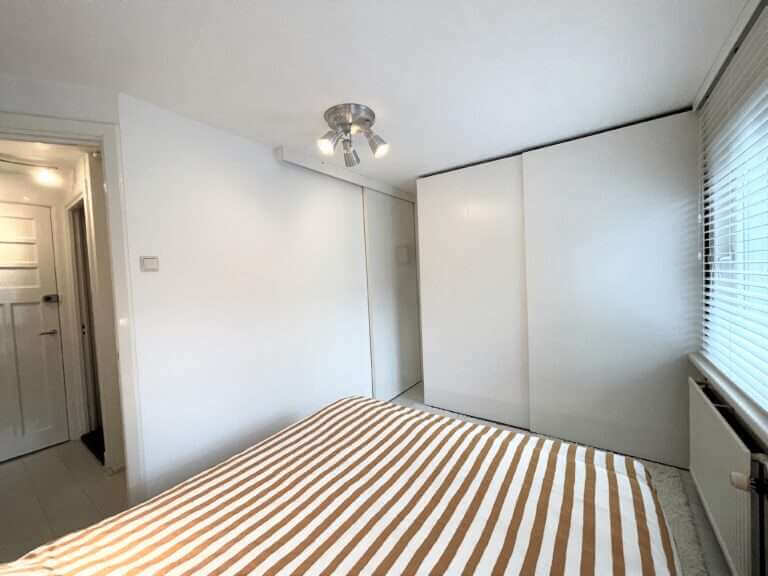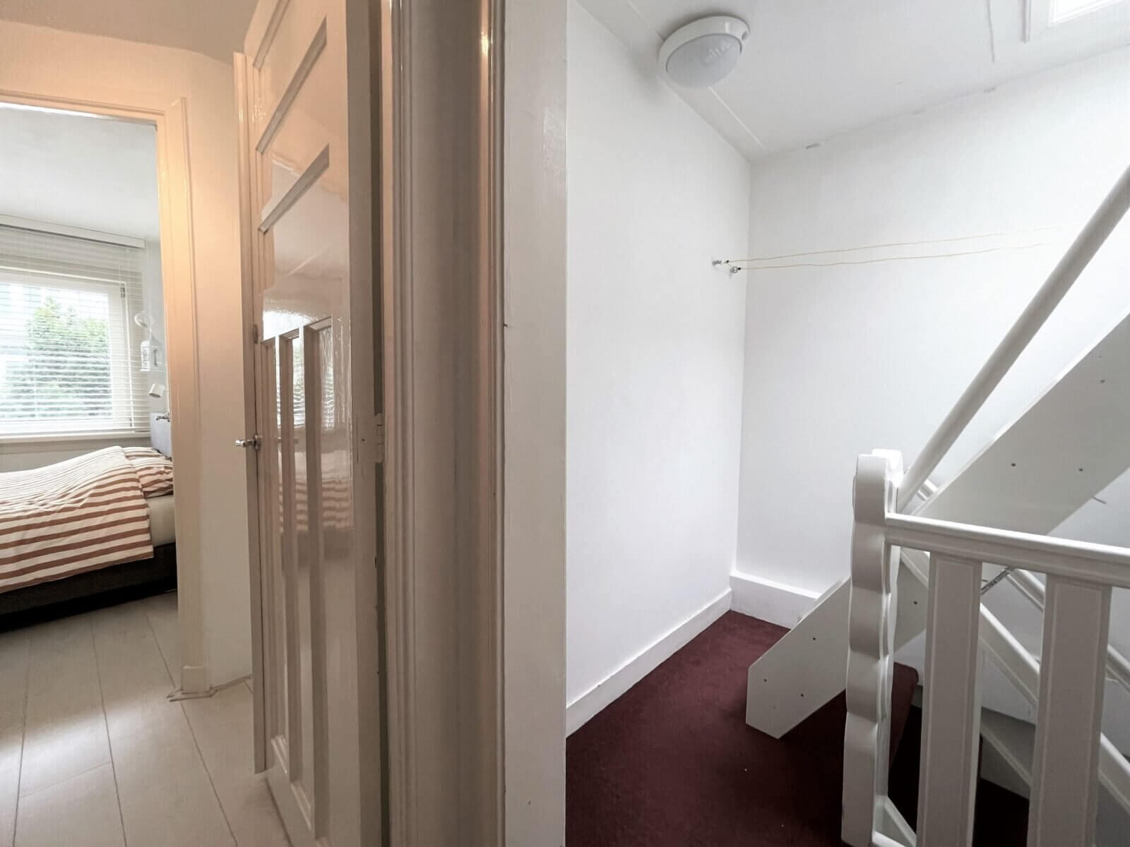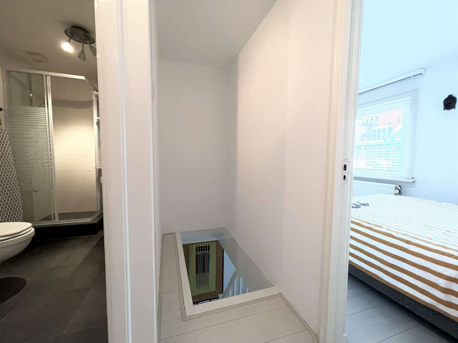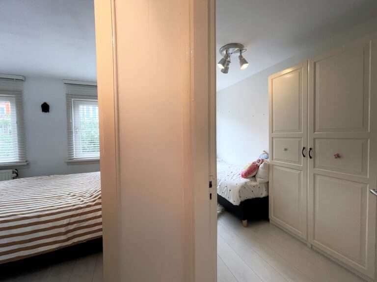 Op de tweede verdieping bevinden zich de twee slaapkamers en tweede badkamer met wasmachine.